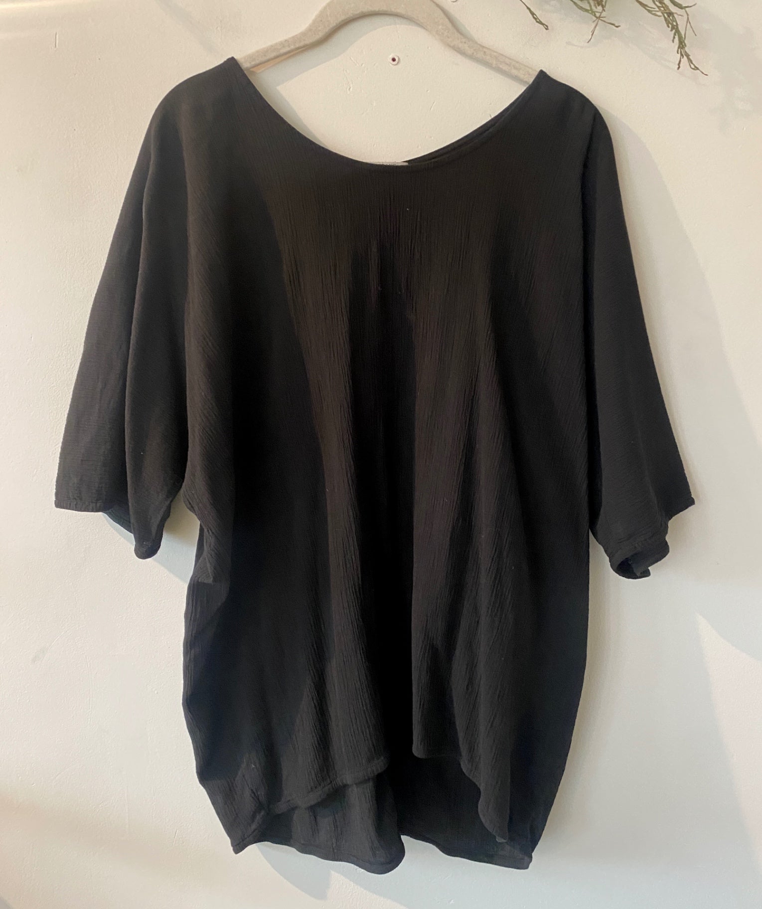 LOOP - Black Crane Crepe Tunic, size S (#8)