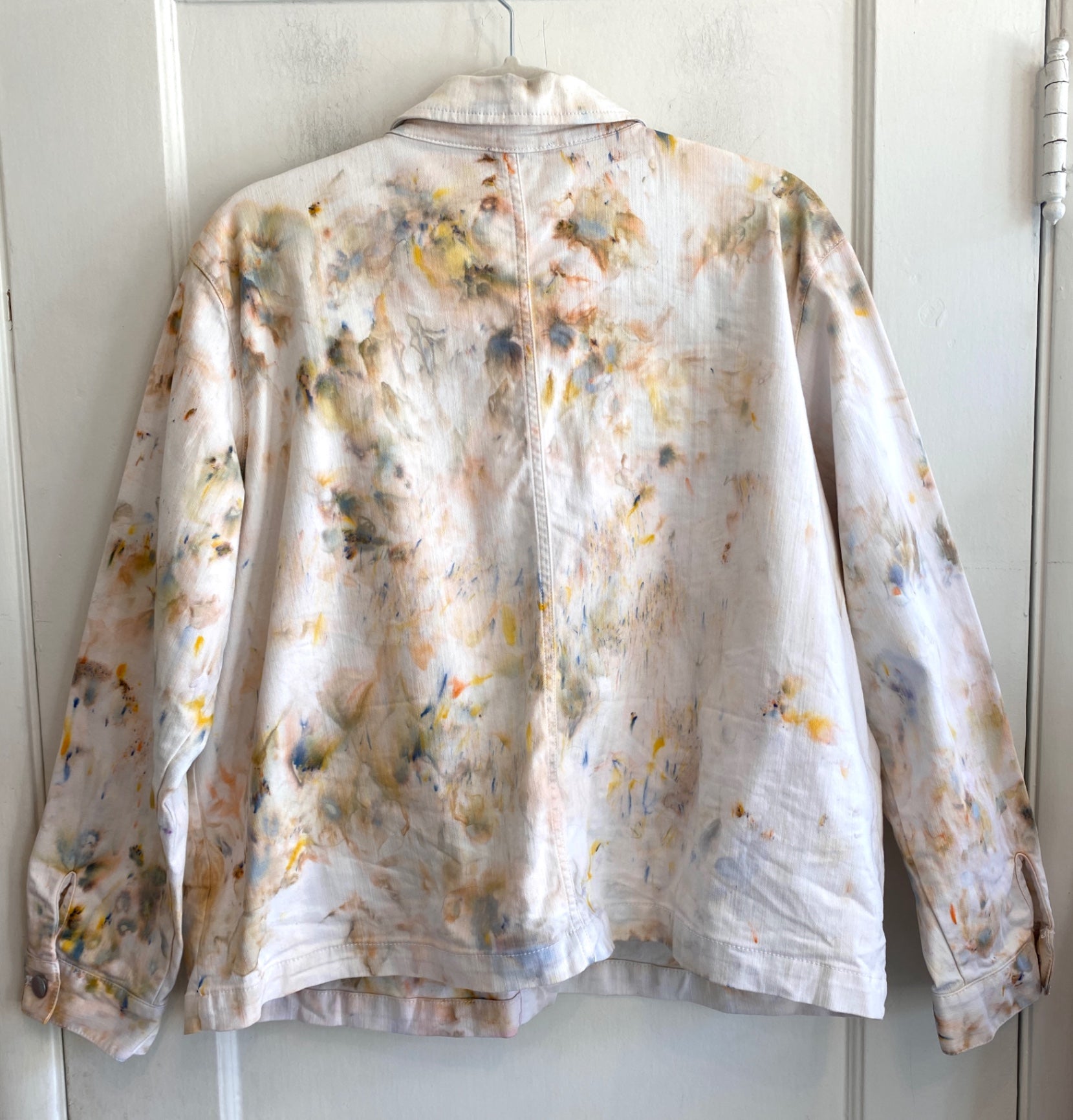 One-of-a-kind, reimagined cotton chore coat, hand ice-dyed in Oakland, CA.