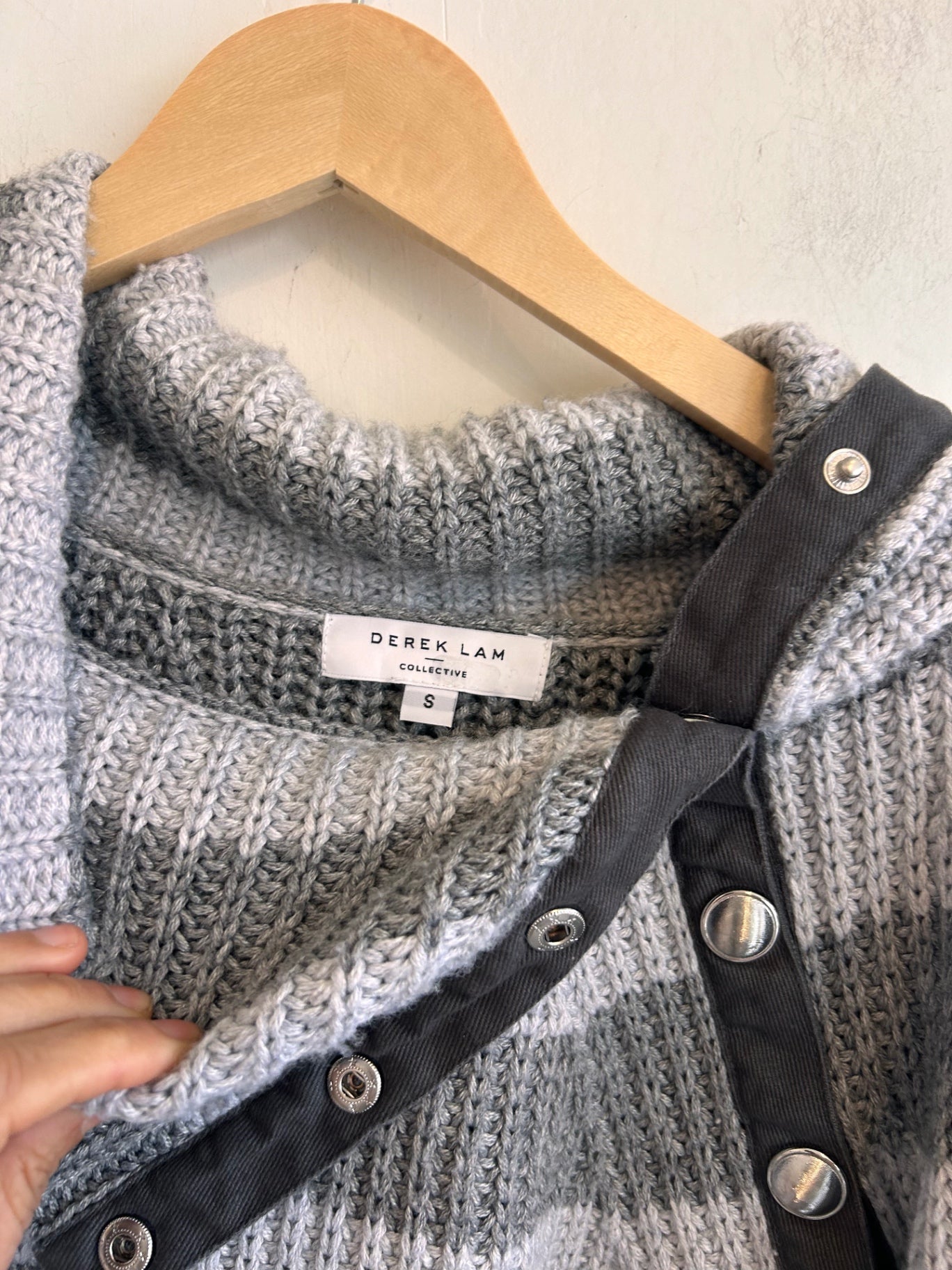 Chunky knit striped sweater, with a cozy feel.