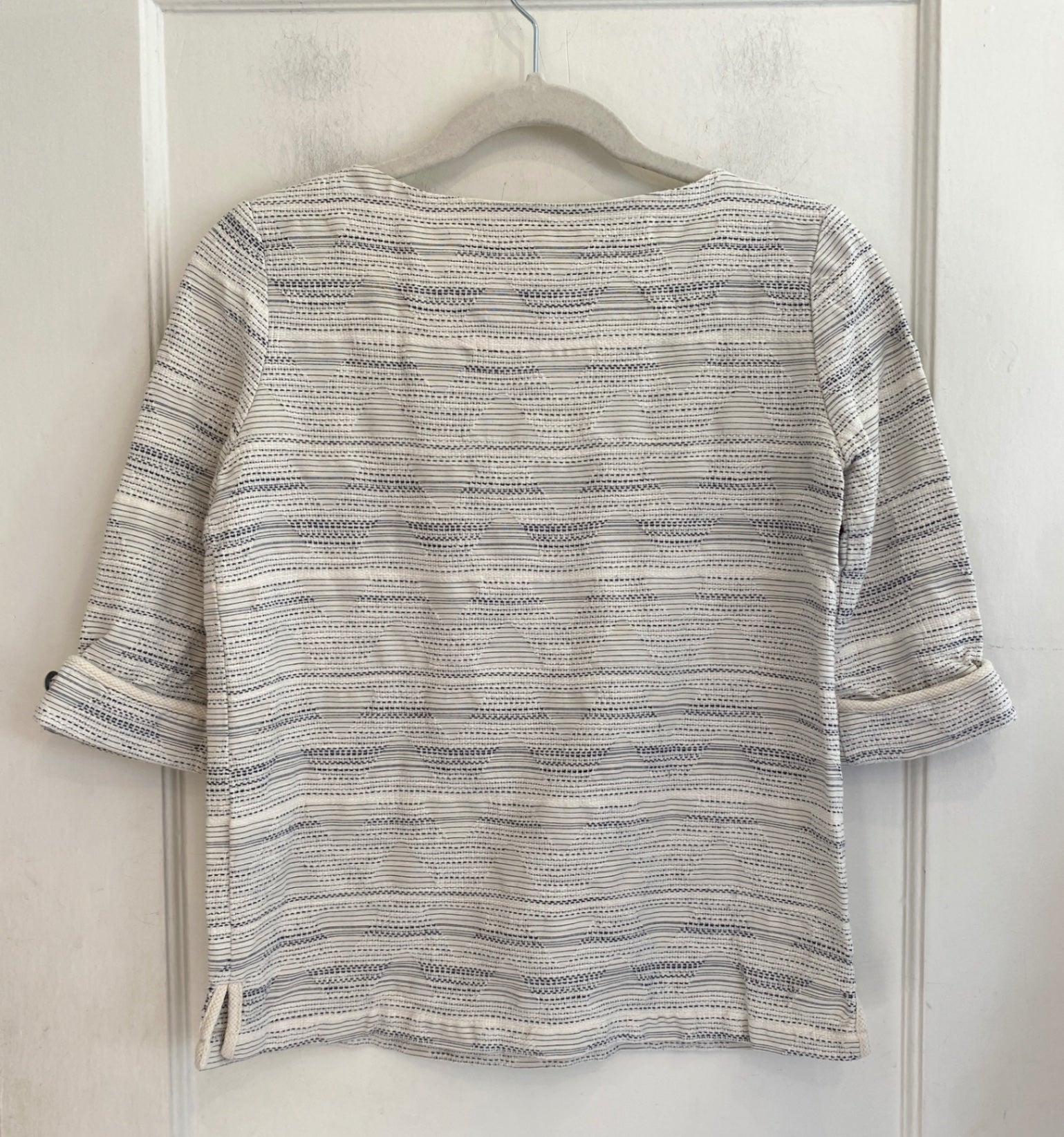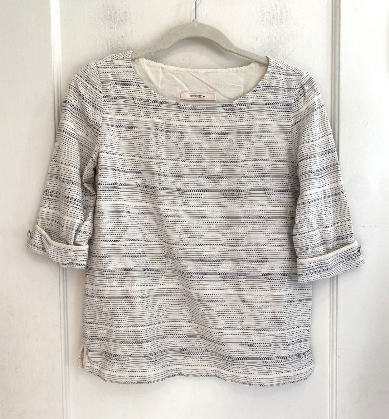 This relaxed-fit blouse features a charming striped pattern in warm tones. Made from lightweight linen, it offers breathable comfort ideal for spring and summer wear. The classic button-down style with a subtle V-neck enhances its versatile appeal. Perfect for casual outings or paired with tailored trousers for a more polished look. Its soft, natural fabric adds a touch of effortless elegance to any wardrobe.