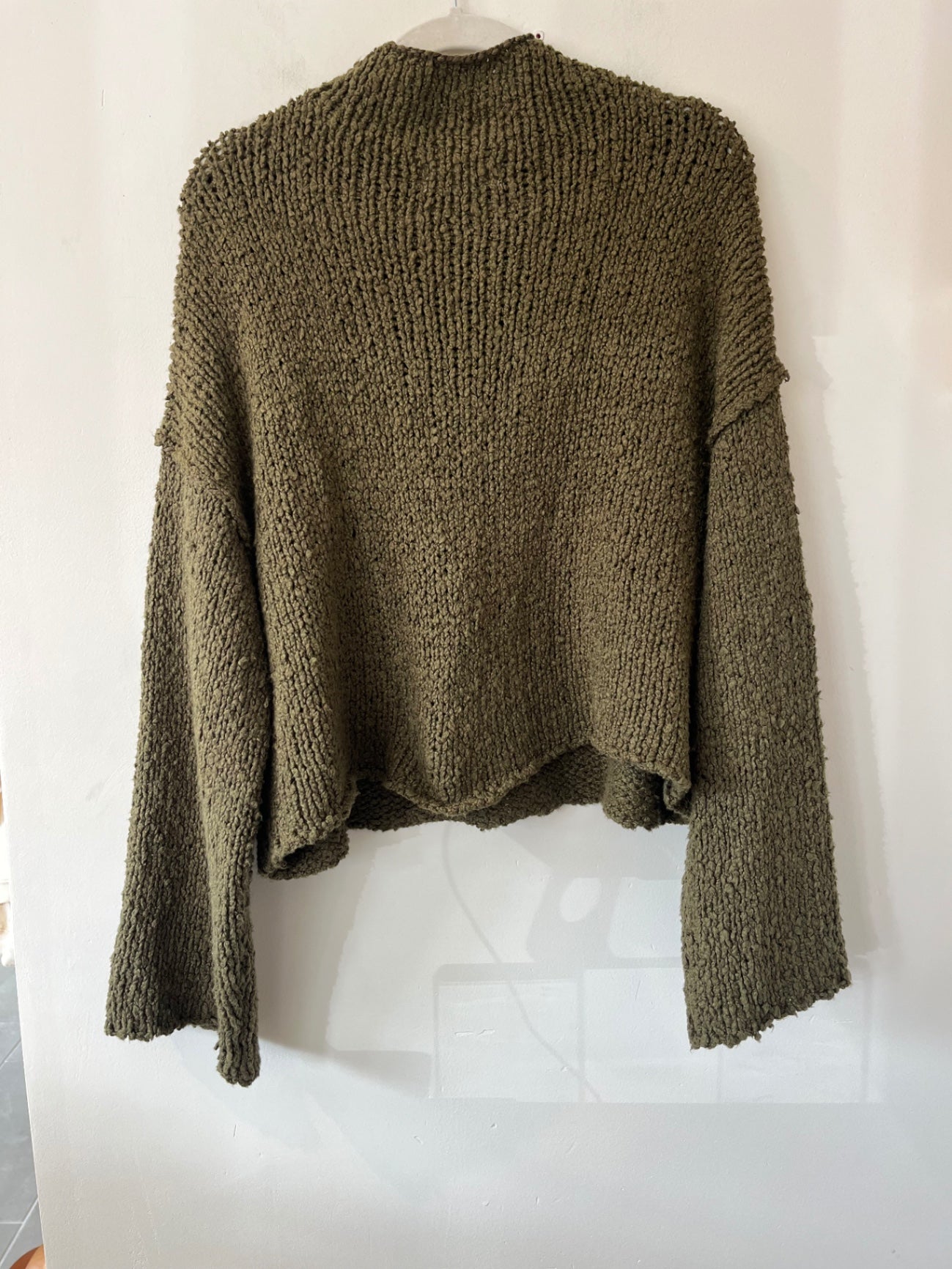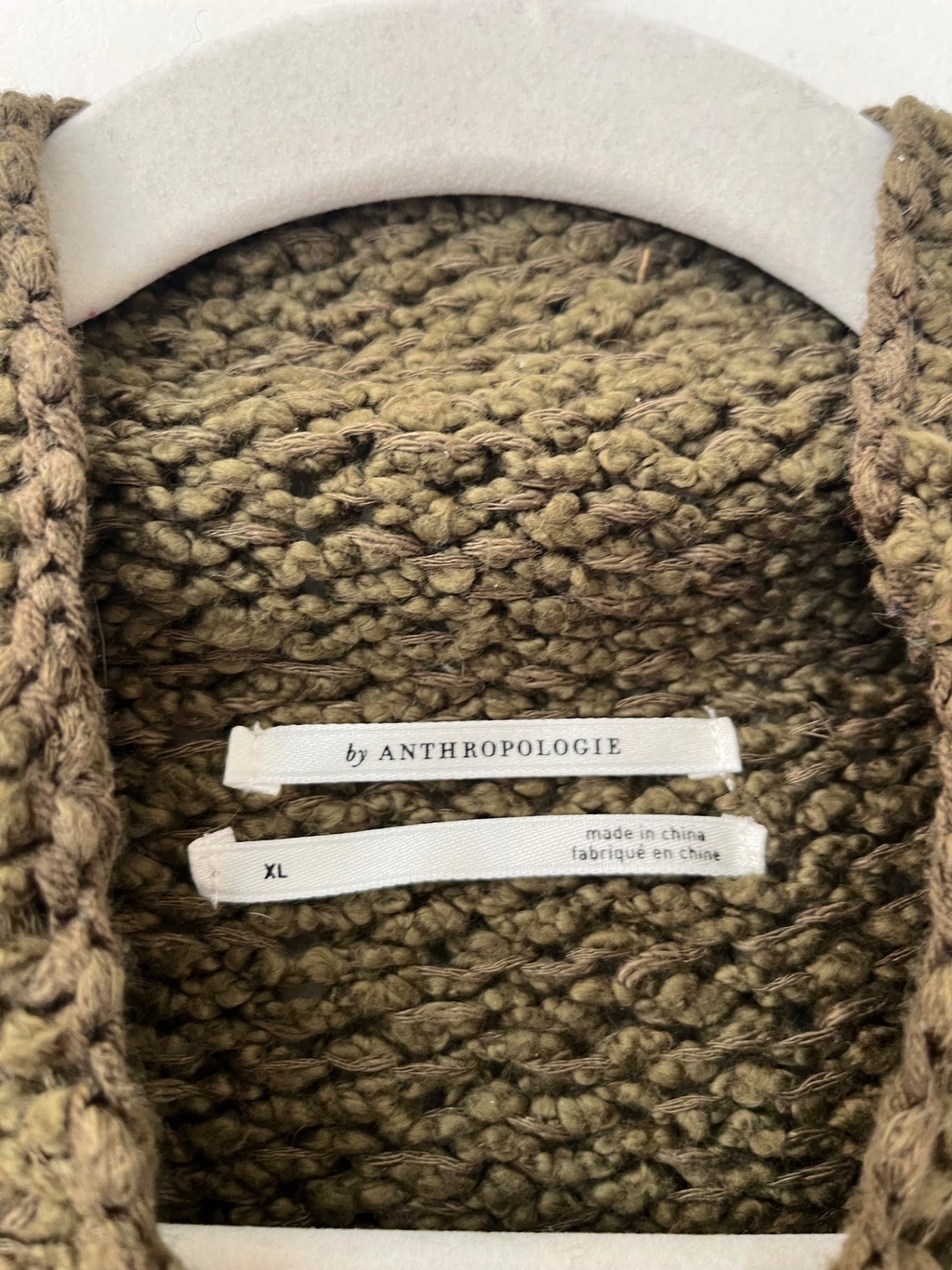 Cozy chunky knit sweater from Anthropologie in an olive green. Features a textured knit with a relaxed fit and slightly cropped length.