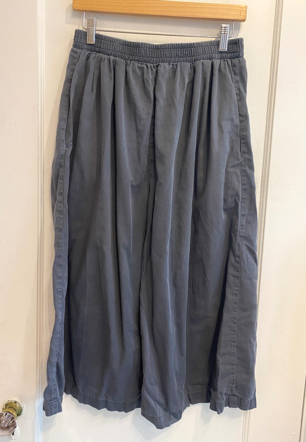 Relaxed-fit gray pants crafted from soft cotton, featuring a subtle pleated front and an elastic waistband for all-day comfort. These versatile trousers are perfect for casual outings or lounging at home. The loose silhouette offers effortless style while ensuring ease of movement. A timeless addition to your wardrobe, these pants pair well with various tops for a laid-back yet polished look.