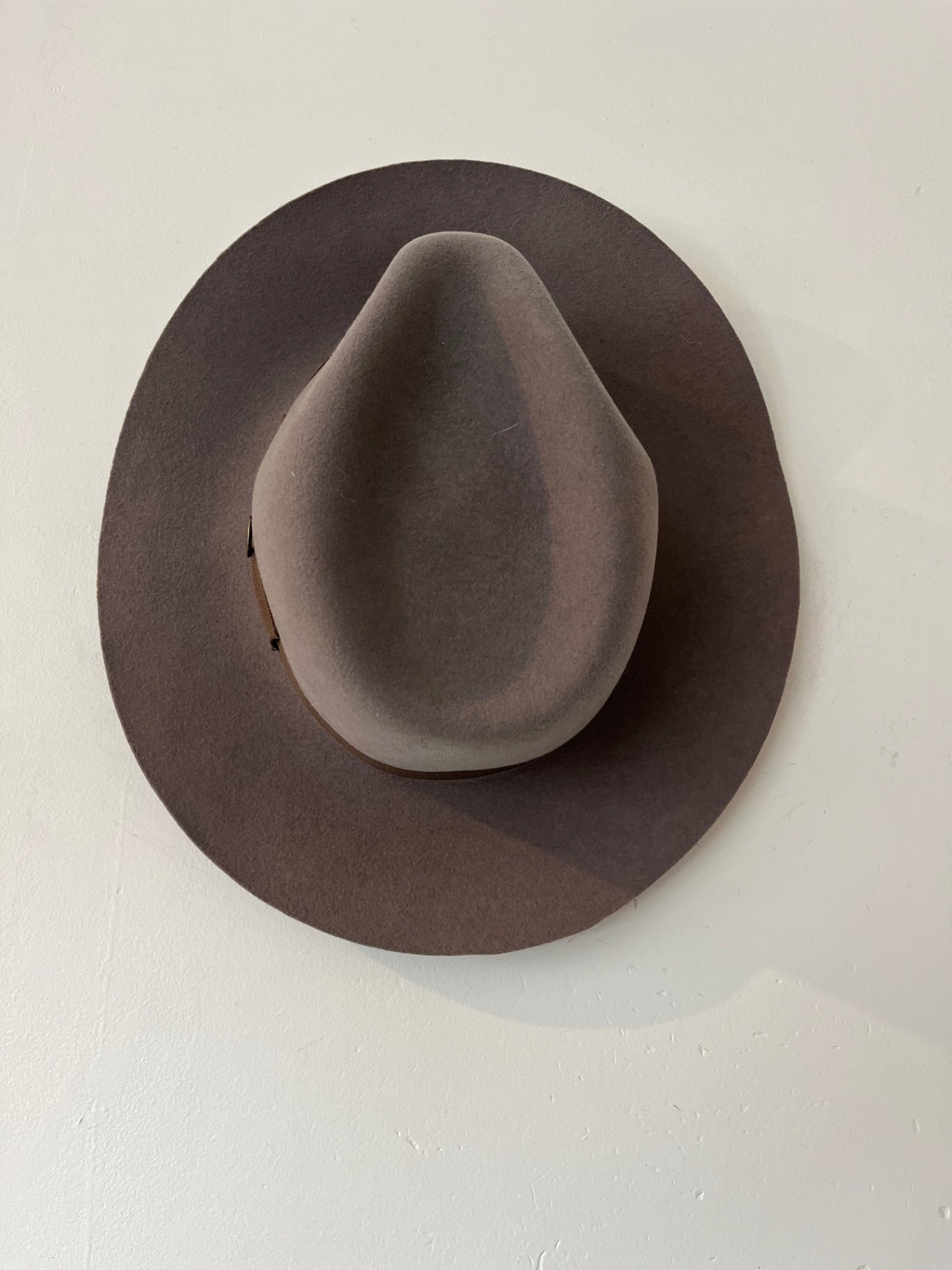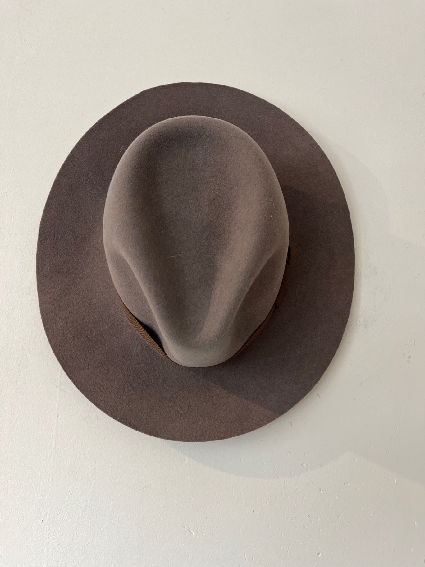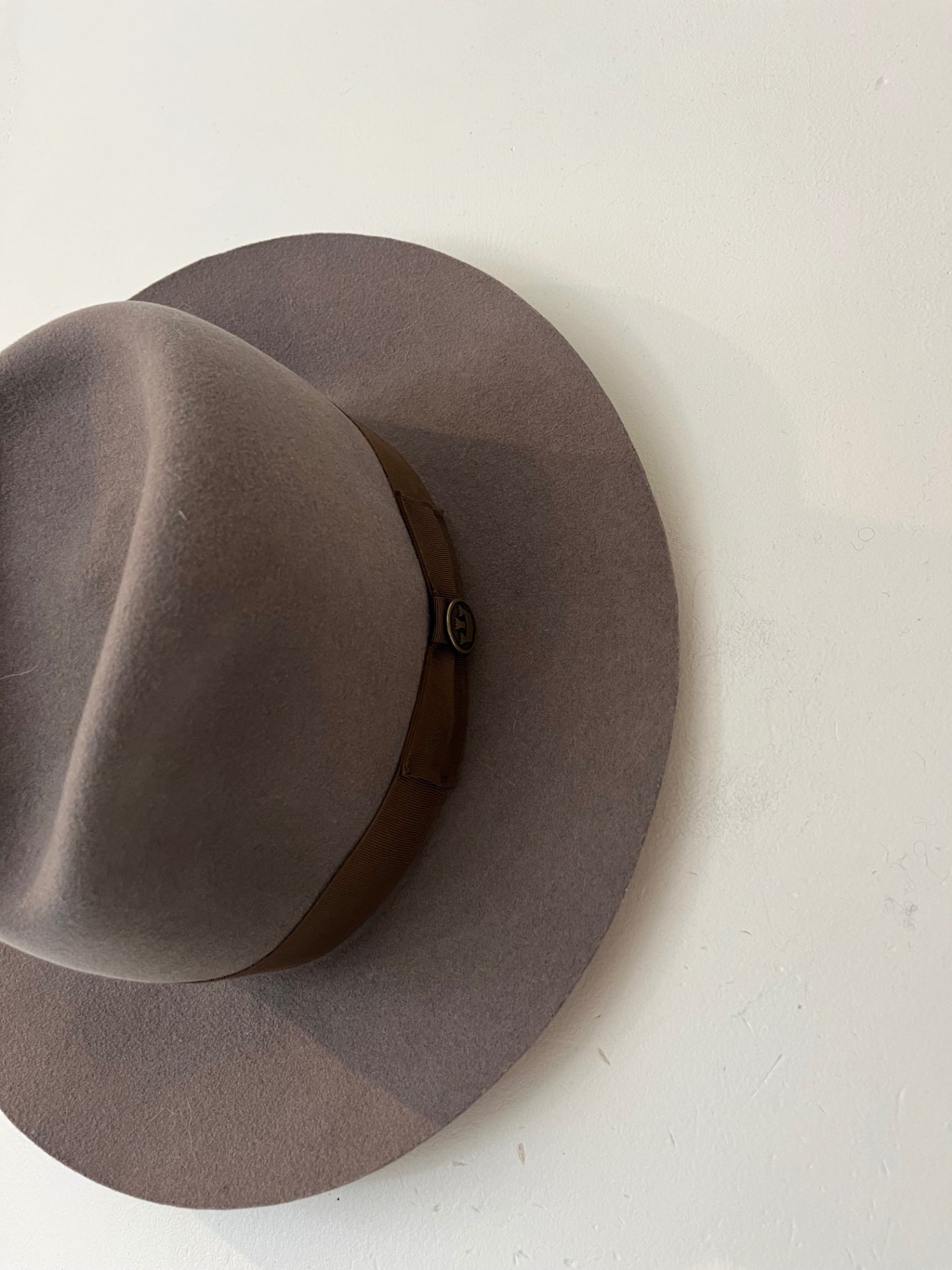 Structured wool-wide brim hat with tonal ribbon band and side detail.