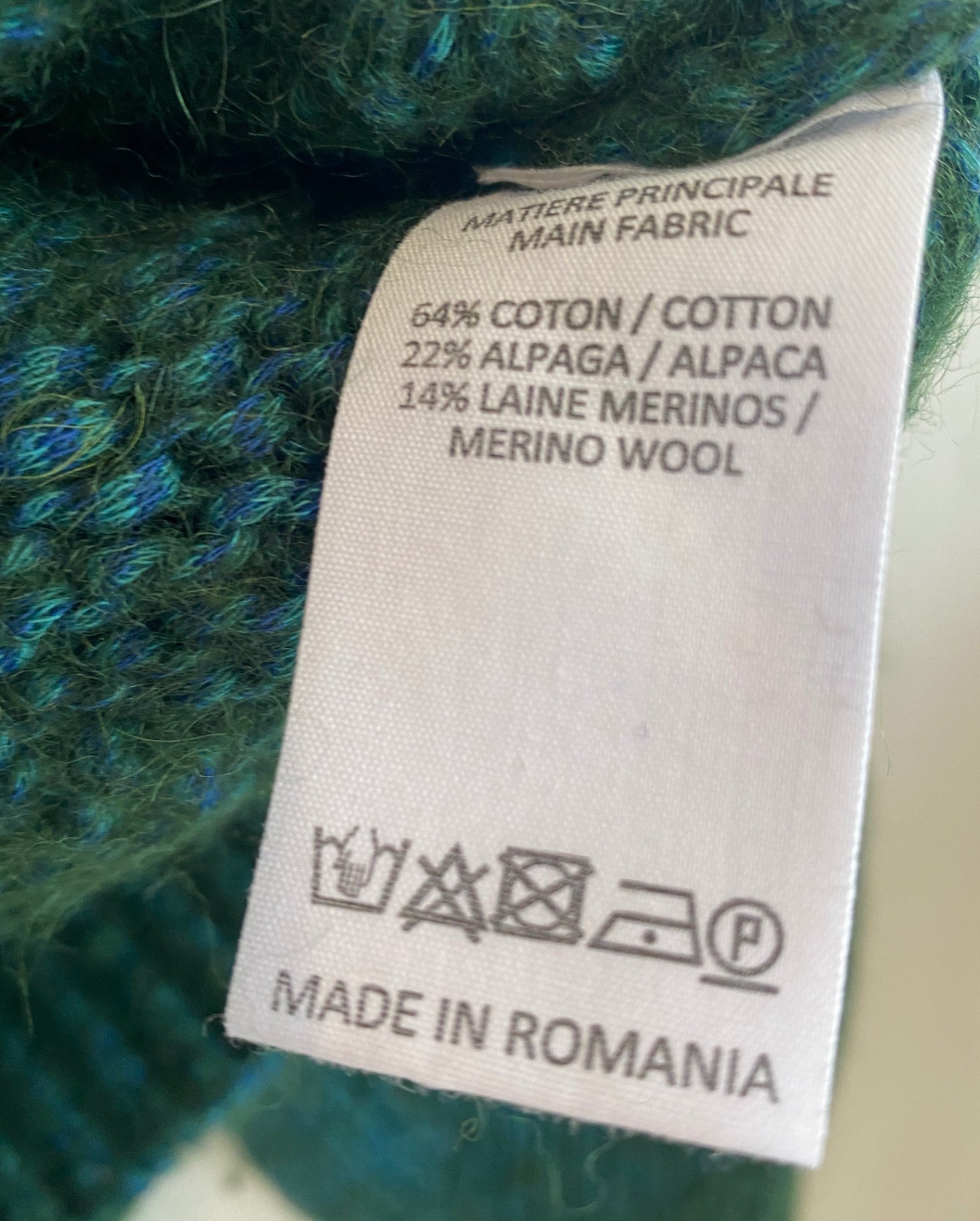64% cotton, 22% alpaca, 14% wool