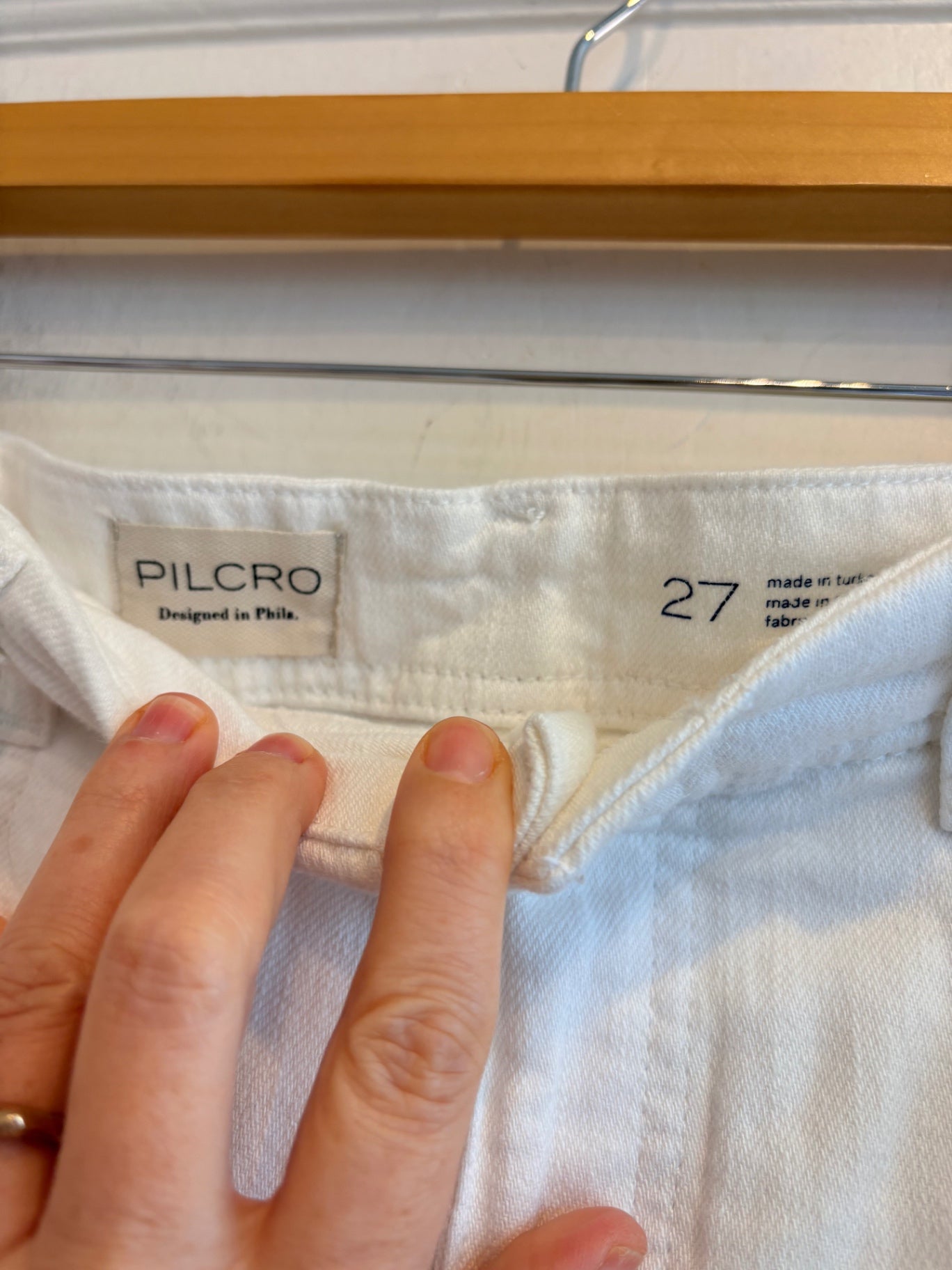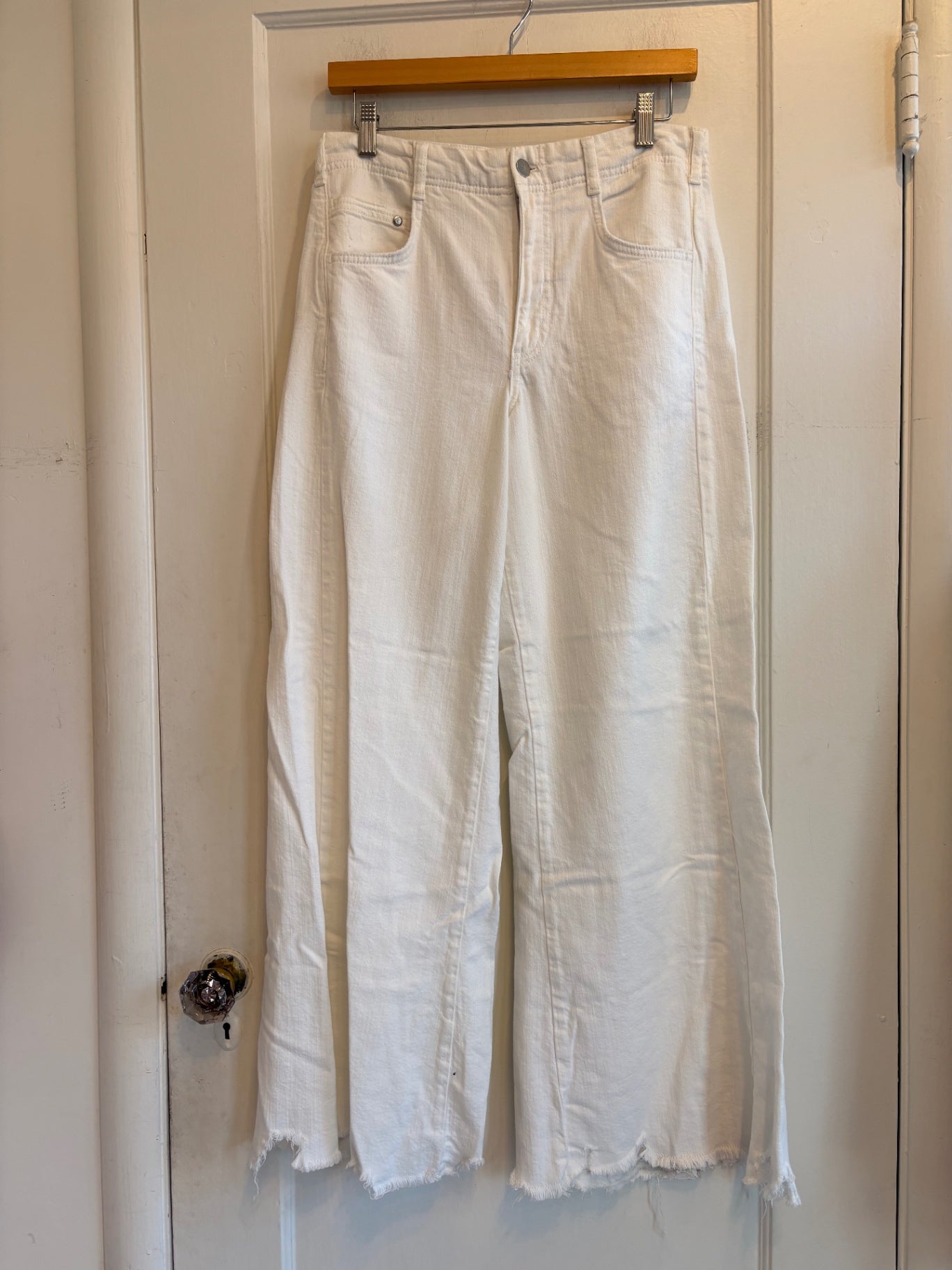 Pilcro high-waisted, wide-leg jeans are crafted from crisp white denim