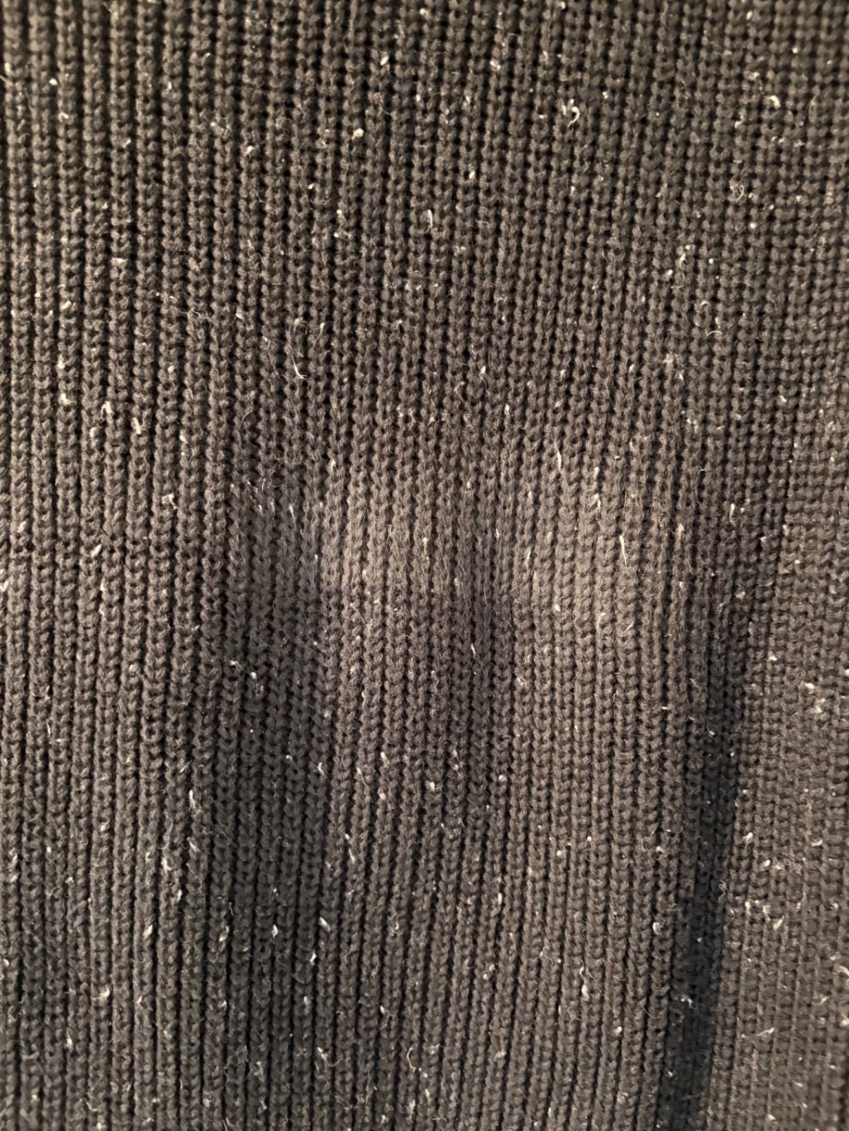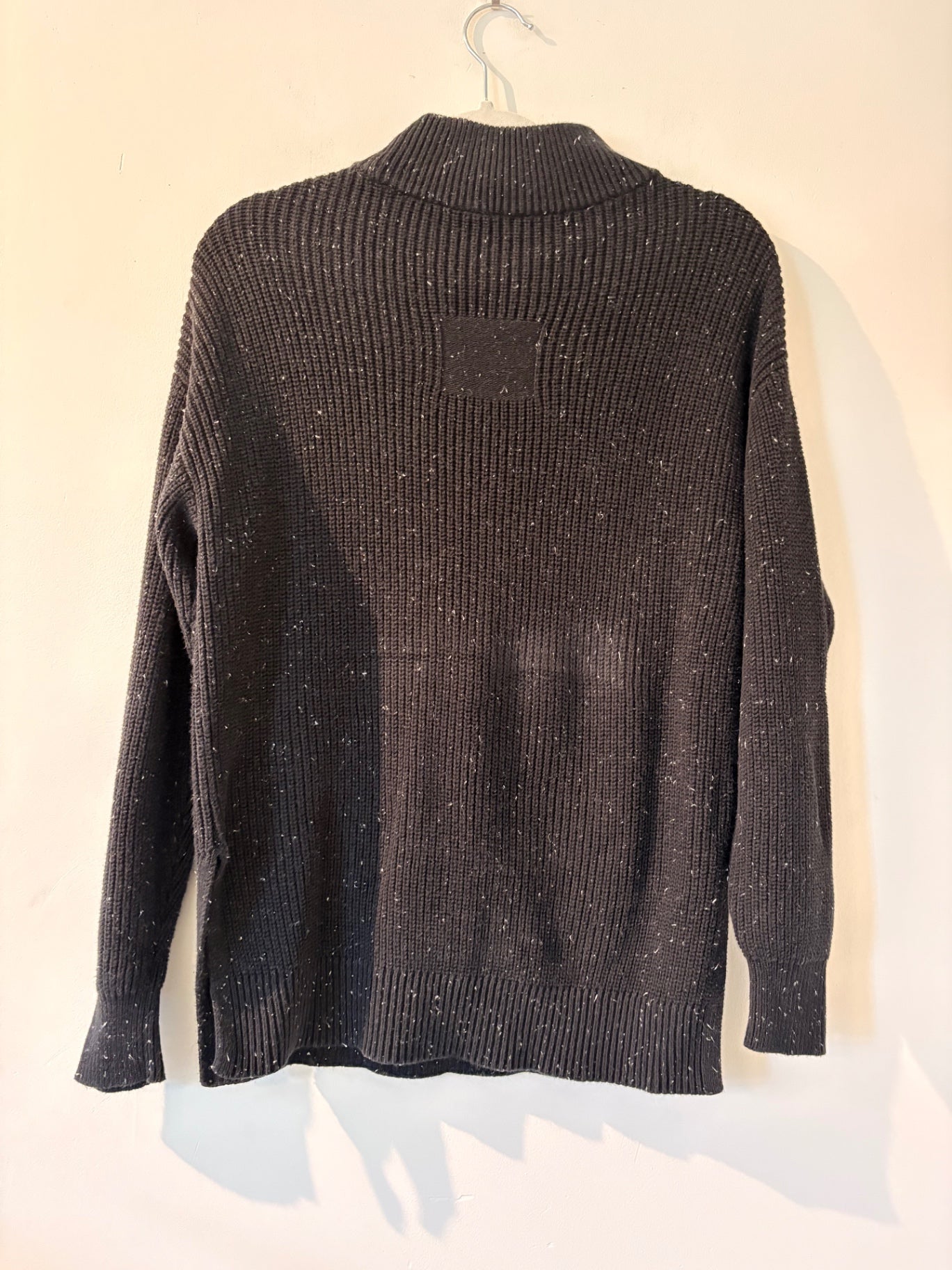 Rib-knit sweater with white flecks throughout. Mock neck and cozy medium-weight knit.