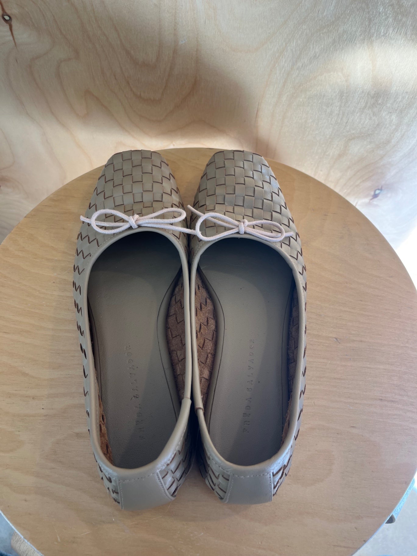 Freda Salvador woven ballet flats with bow in taupe