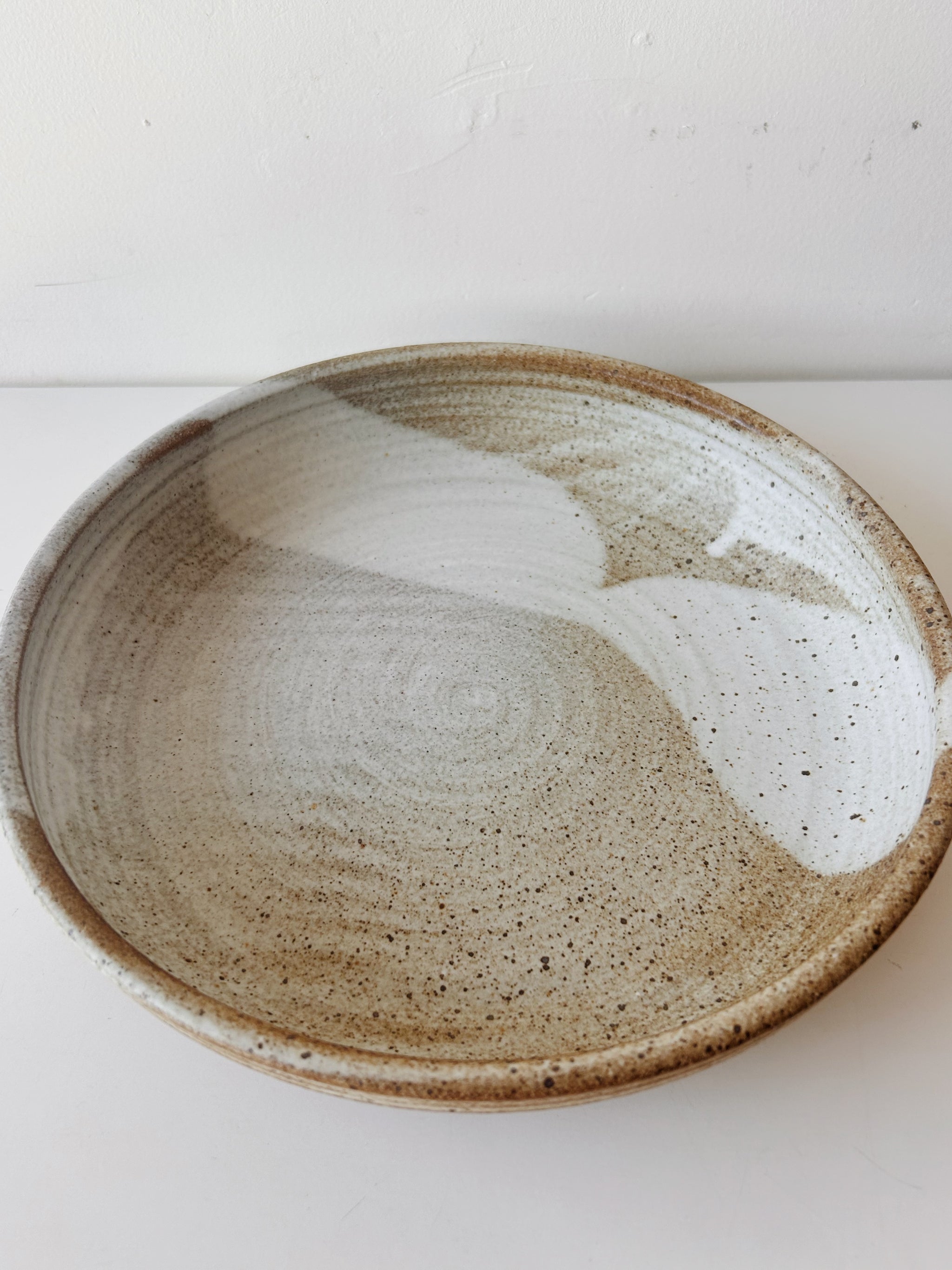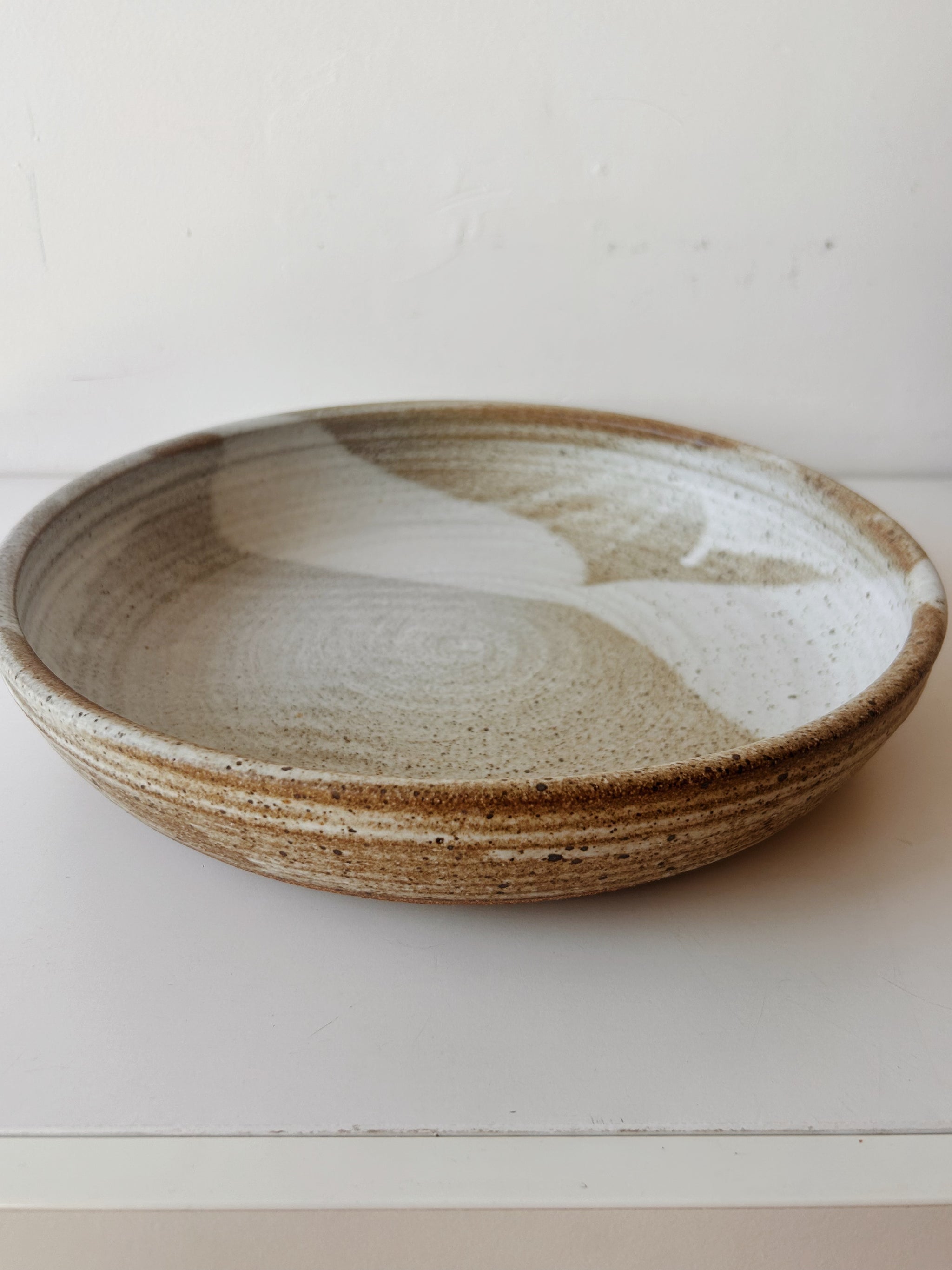 Glazed in a toasty matte glaze with a swath of foggy white.