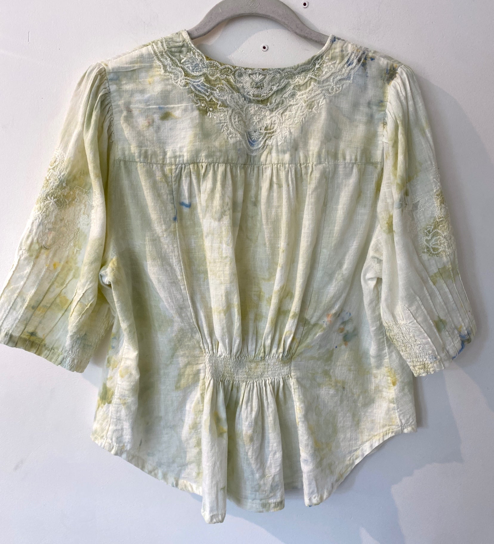 One-of-a-kind, reimagined Free People blouse, hand ice-dyed in Oakland, CA.
