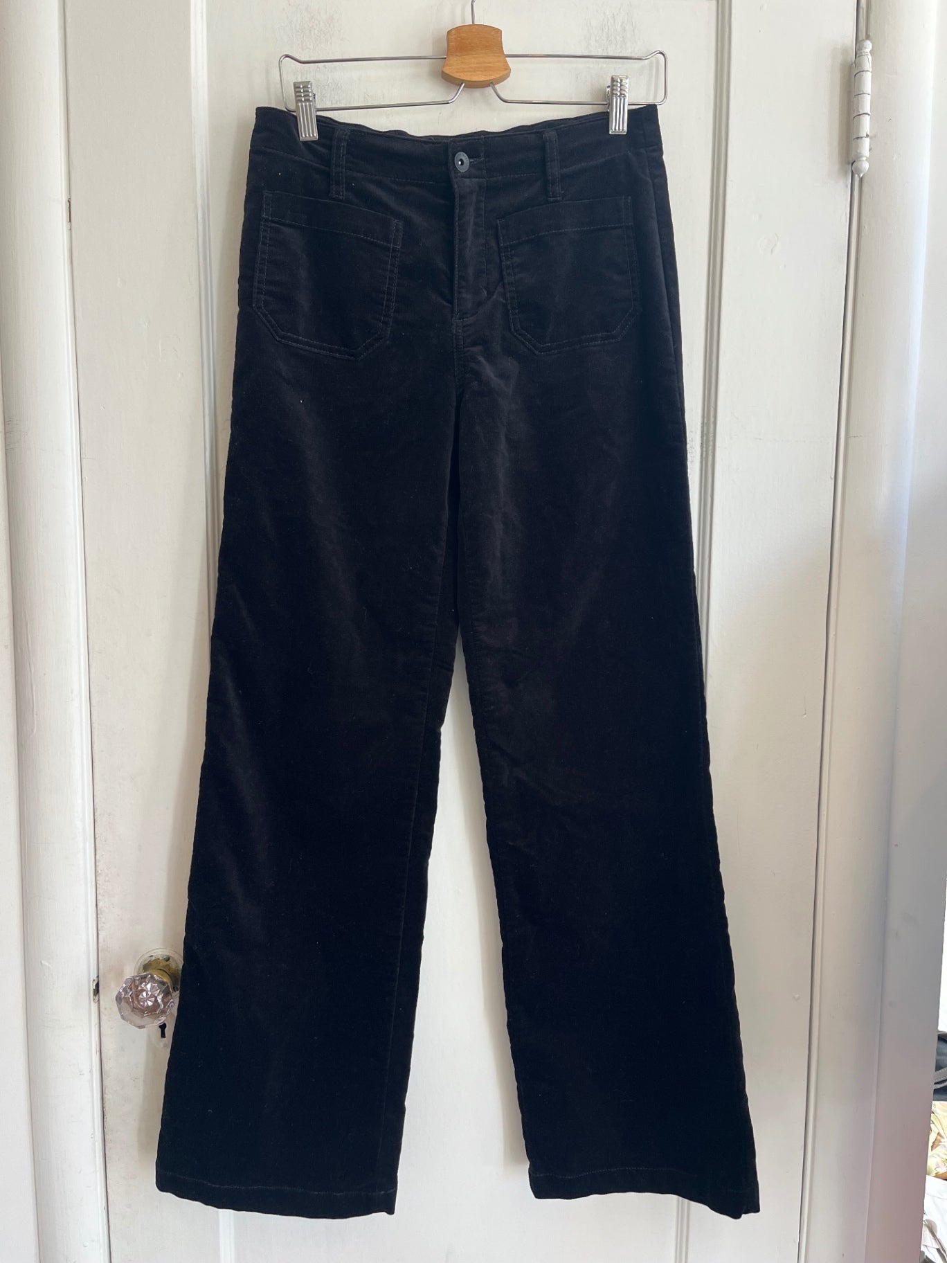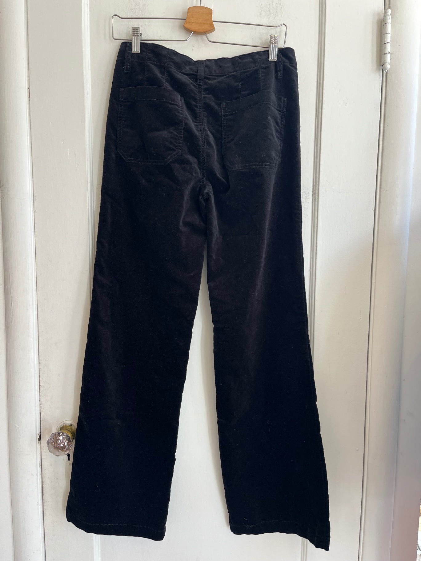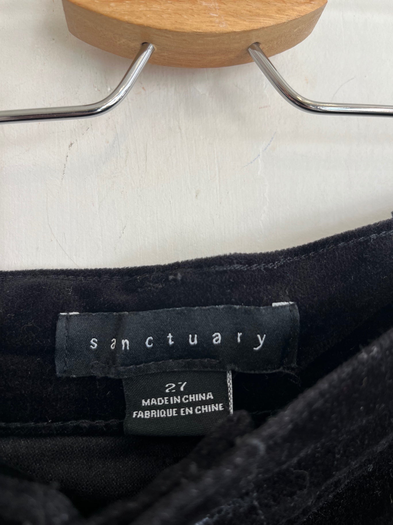 Black velvet pants by Sanctuary with a straight leg silhouette. Soft, structured fabric with classic five pocket styling.
