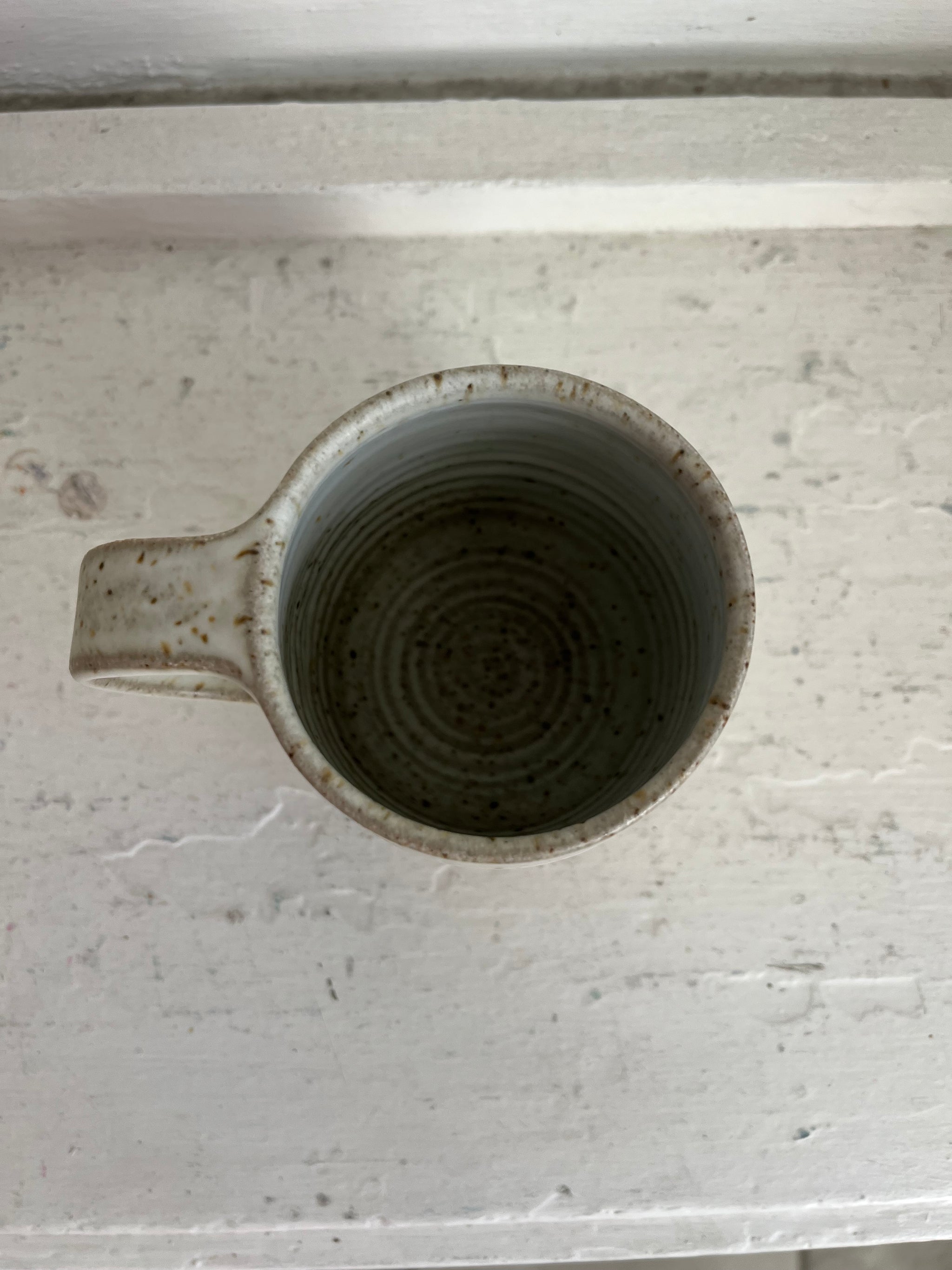 The mug you will receive may not match the photos provided, as each piece is hand-thrown and will vary slightly in color/design.