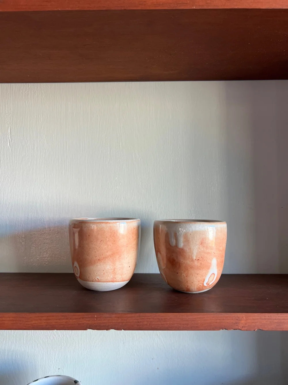 Shino teacup made by Berkeley-based ceramicist, Libby Hruska.