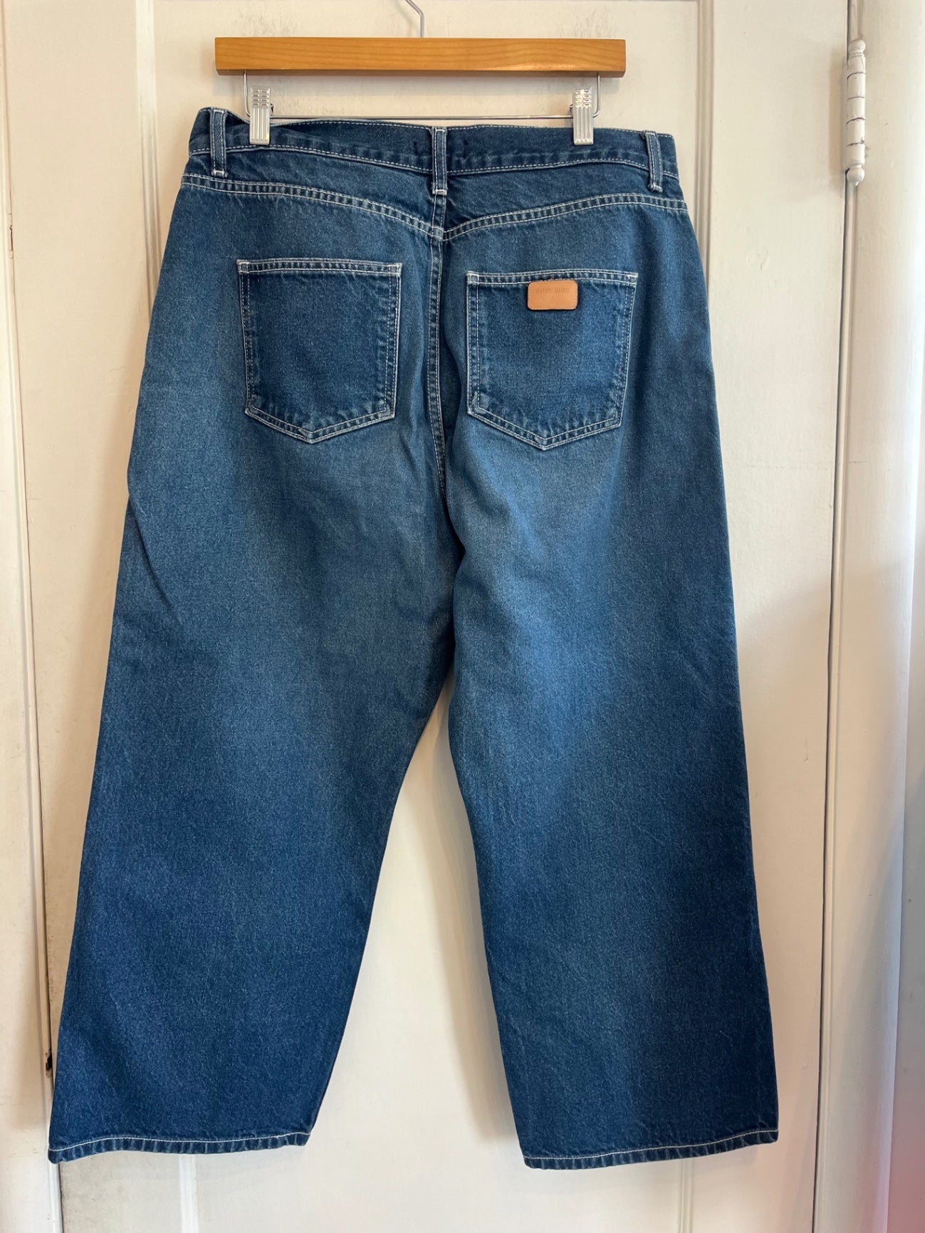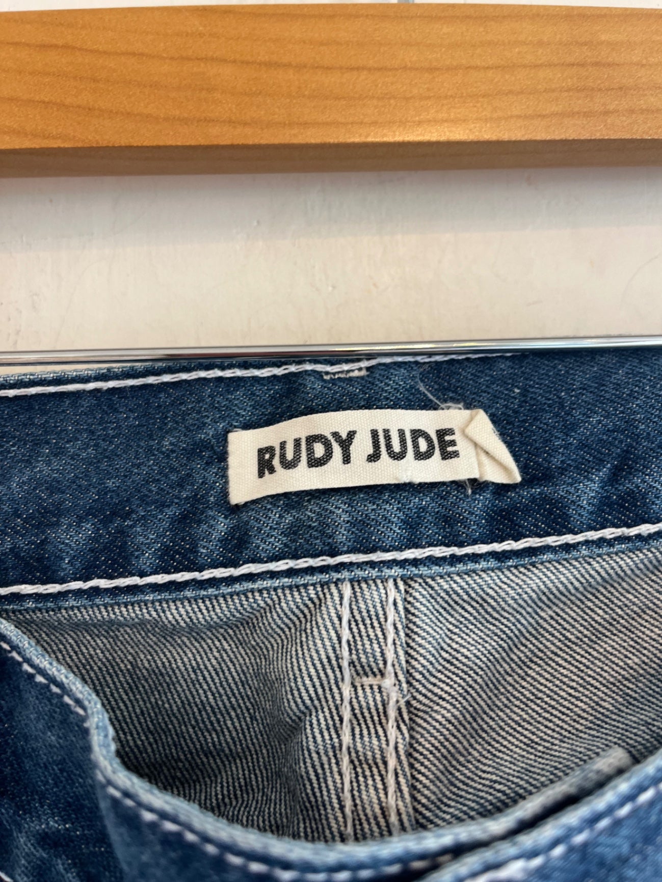 Rudy Jude patchwork jeans in medium wash denim. Relaxed fit with panel detailing.