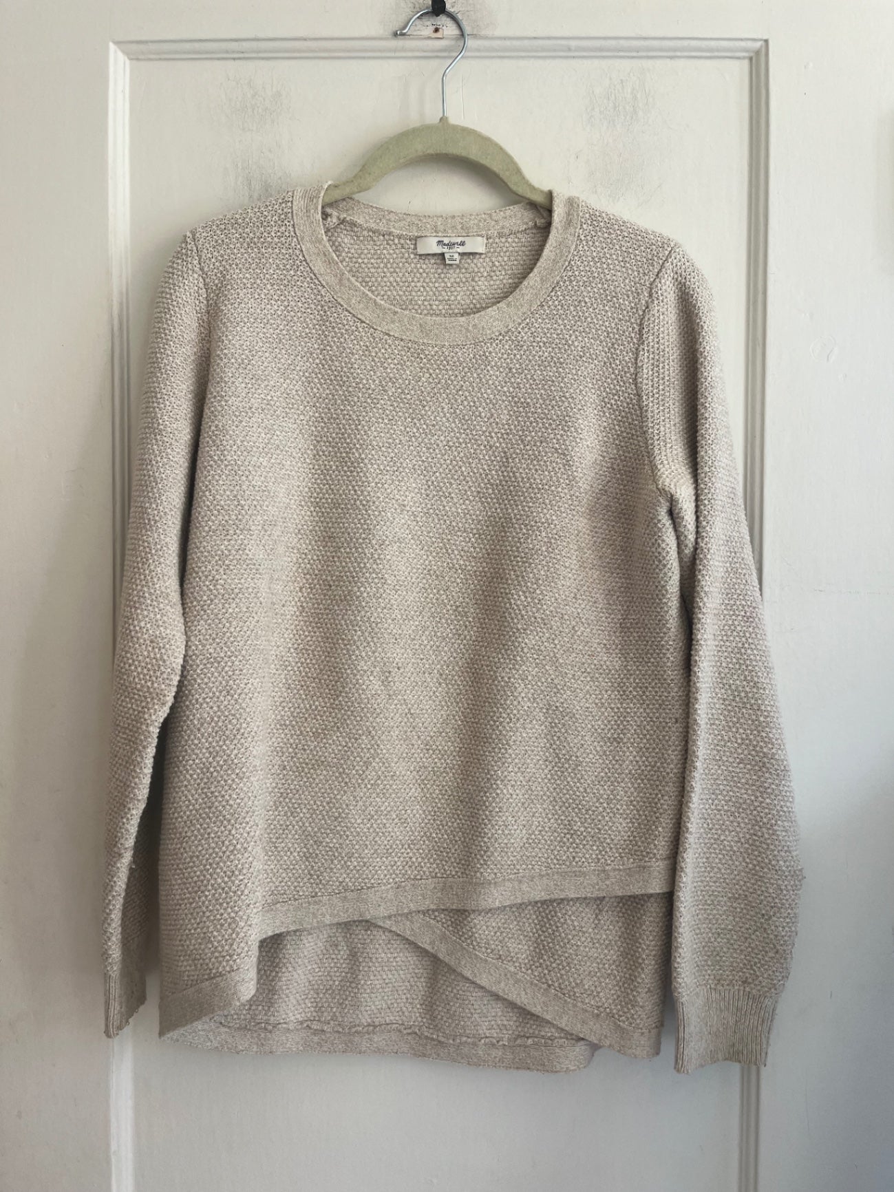 Neutral textured knit sweater from Madewell with a classic crew neckline. Subtle mid-weight feel with textured feel, slightly relaxed feel.