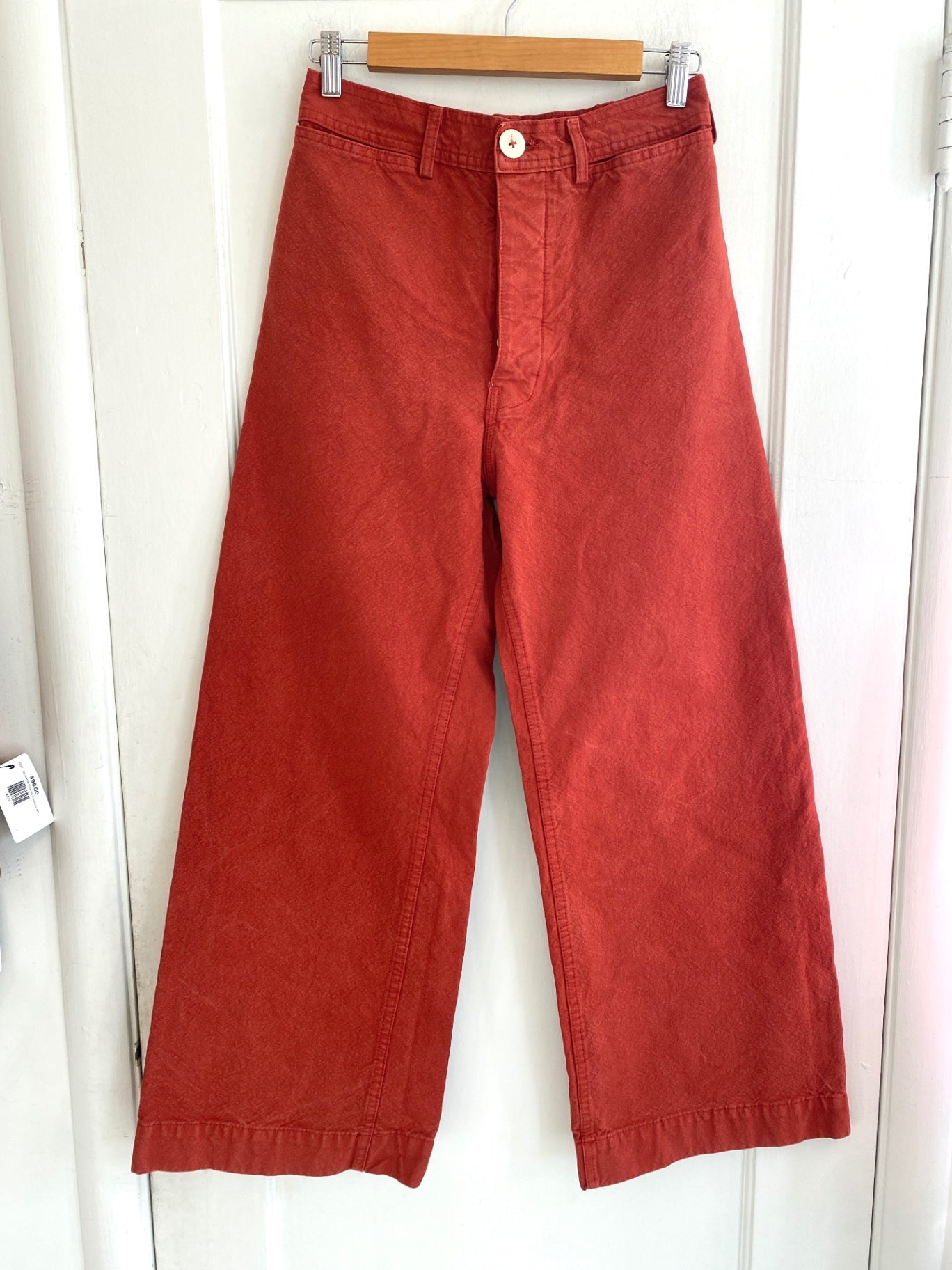 These wide-leg pants from Jesse Kamm feature a relaxed fit with a vibrant red hue. Crafted from cotton, they offer a comfortable and breathable wear, perfect for casual outings. The classic design with a high waist and wide legs makes them versatile and stylish.