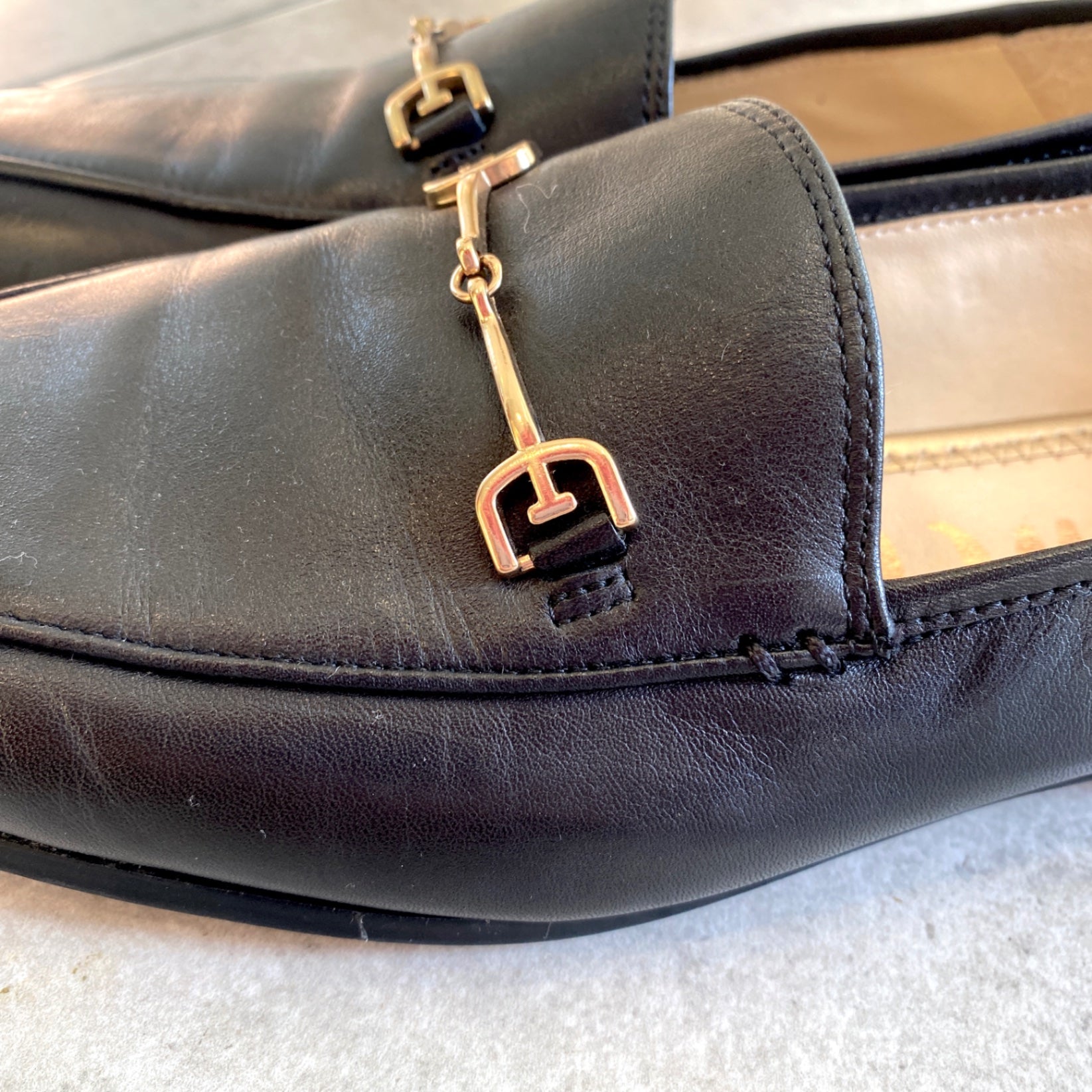These classic black loafers from Sam Edelman combine timeless sophistication with comfortable craftsmanship. Crafted from smooth leather, they feature a stylish gold-tone metal bit detail across the vamp. Ideal for both office wear and casual outings, these loafers add a polished touch to any outfit. The sturdy sole ensures durability, while the sleek profile keeps your look elegant and effortless.