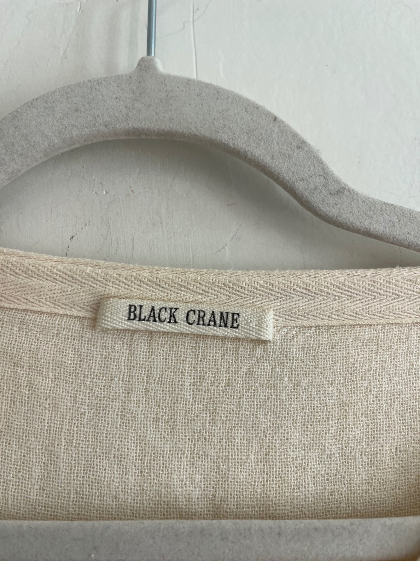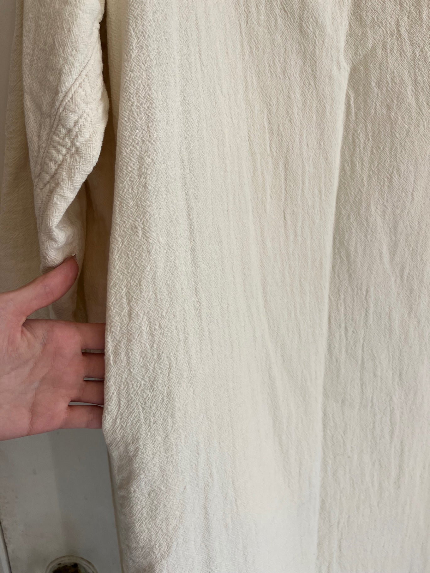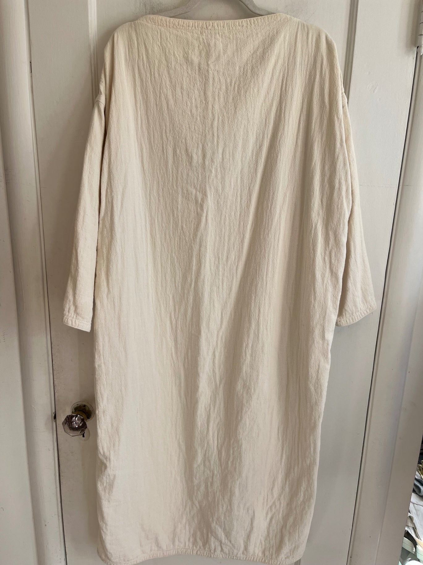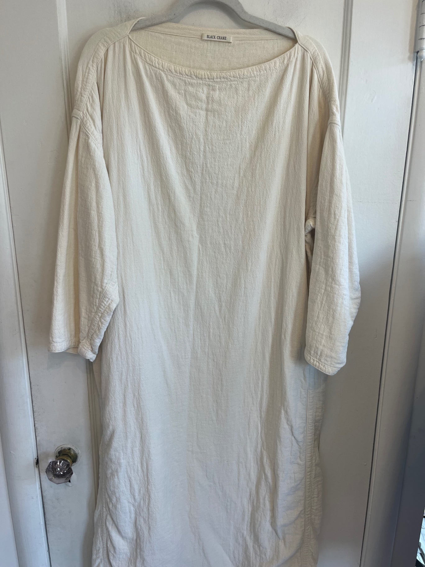 Minimalist Black Crane ivory dress. Features a relaxed oversized silhouette with drop shoulders and elbow-length sleeves.