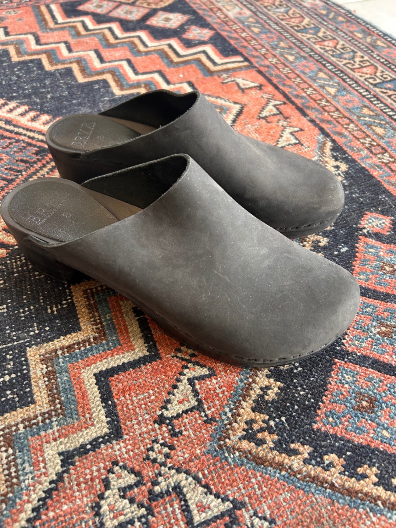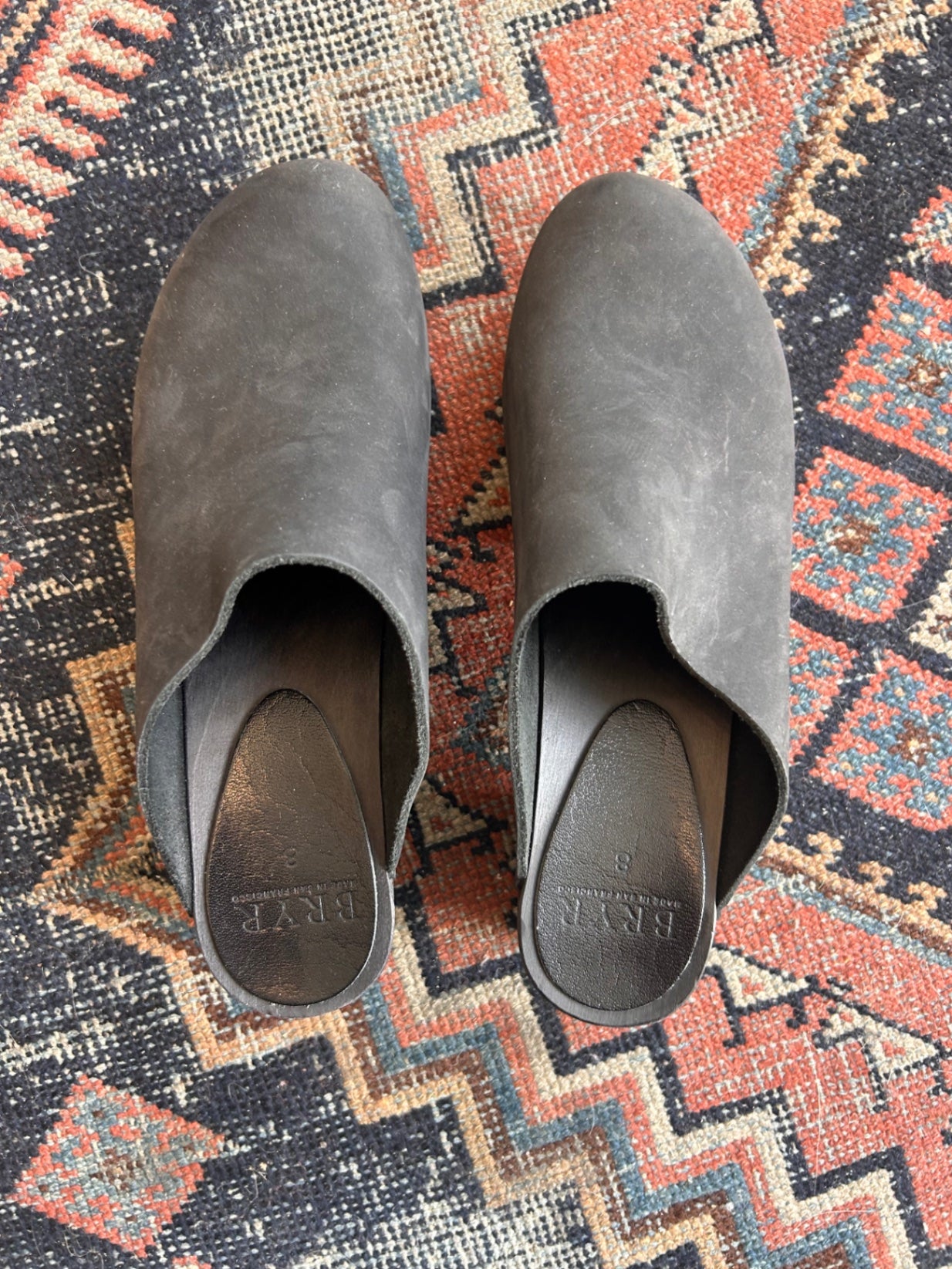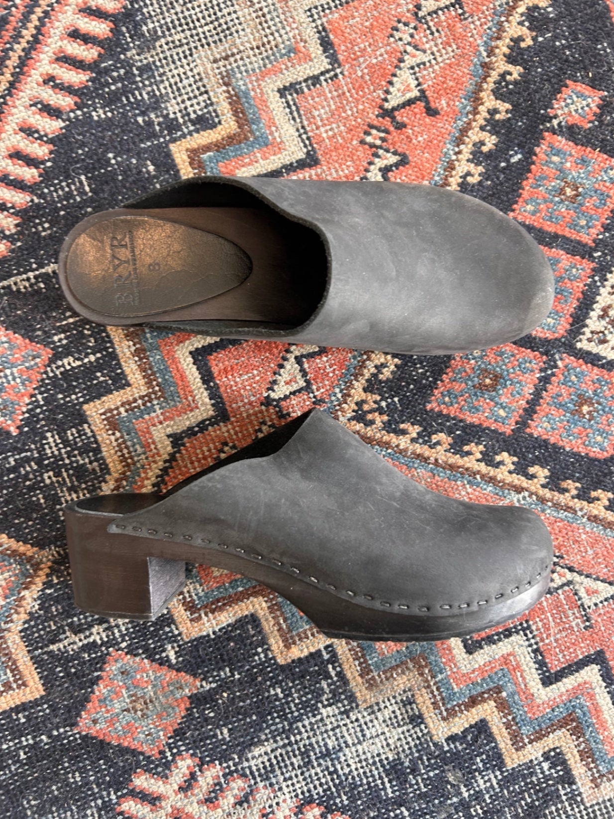 Bryr black leather clogs with a solid wood base. Known for their craftsmanship and comfort made in San Francisco.