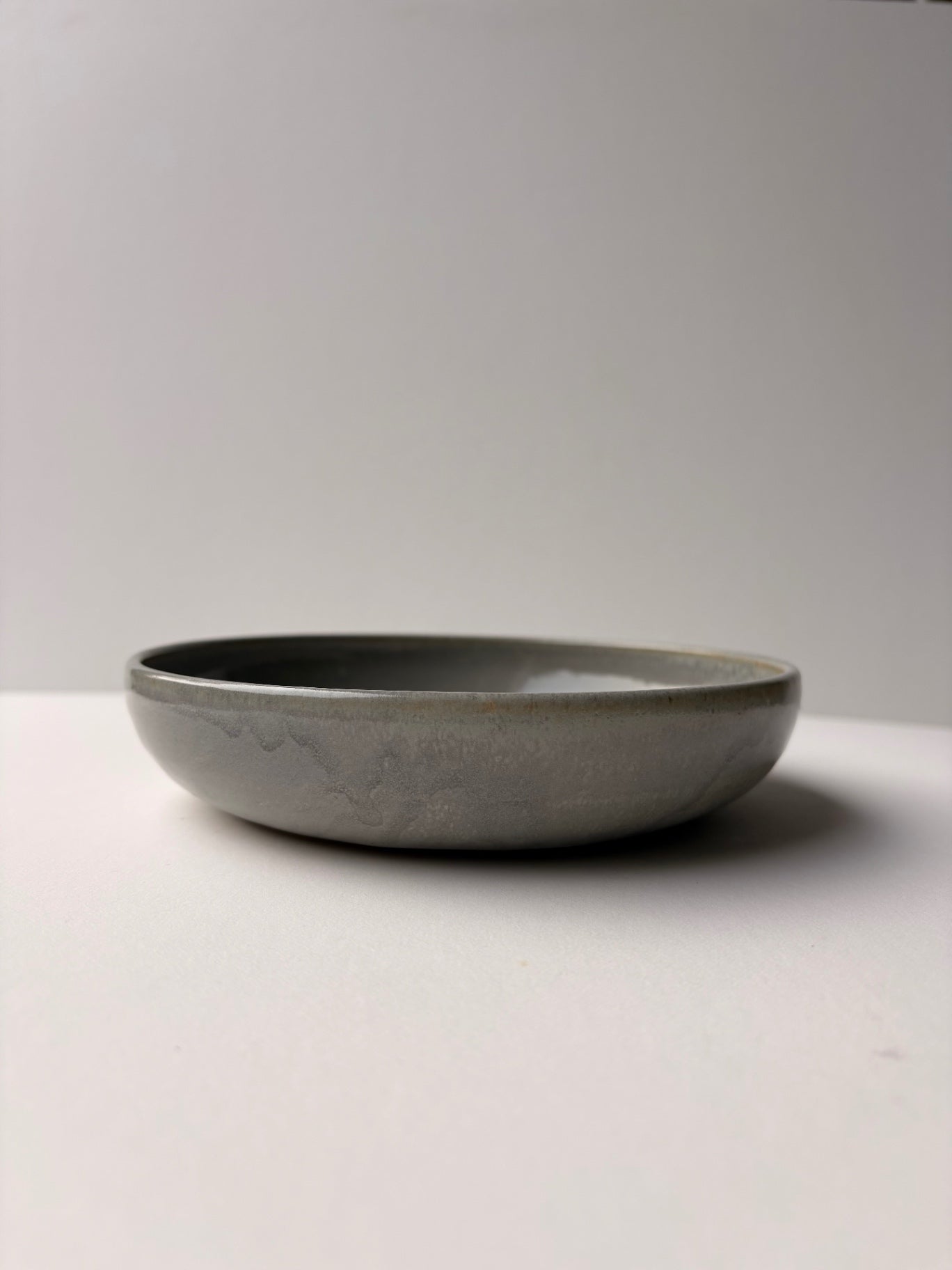 A minimalist gray ceramic bowl that offers a sleek and timeless look. Perfect for serving or decoration, its smooth finish and subtle hue make it a versatile addition to any table setting or kitchen decor.