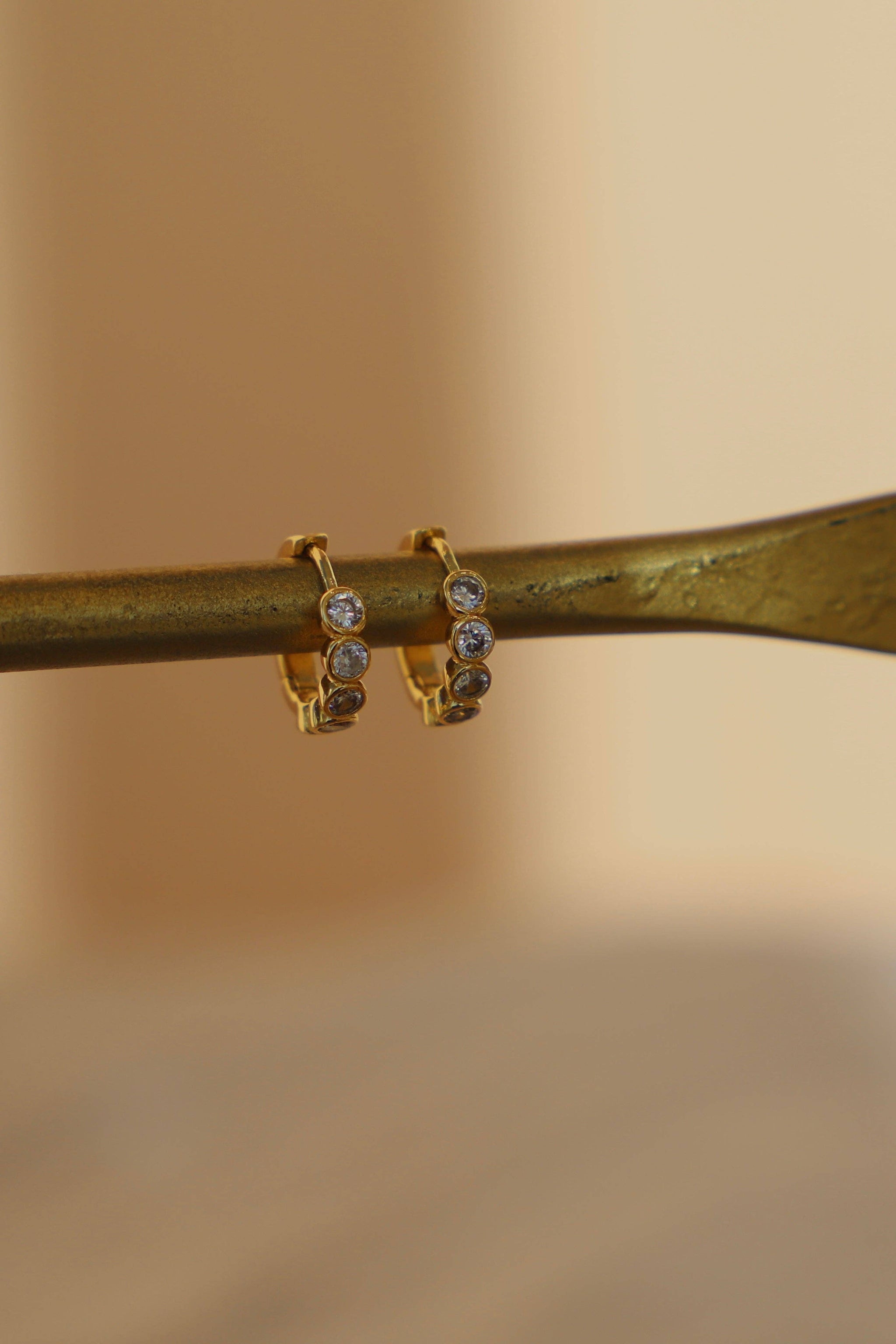These round eternity huggie hoops feature bright round CZ stones around a gold hoop in a huggie style that clasps. These earrings are comfortable for everyday wear and add just the right amount of shimmer to your stack.