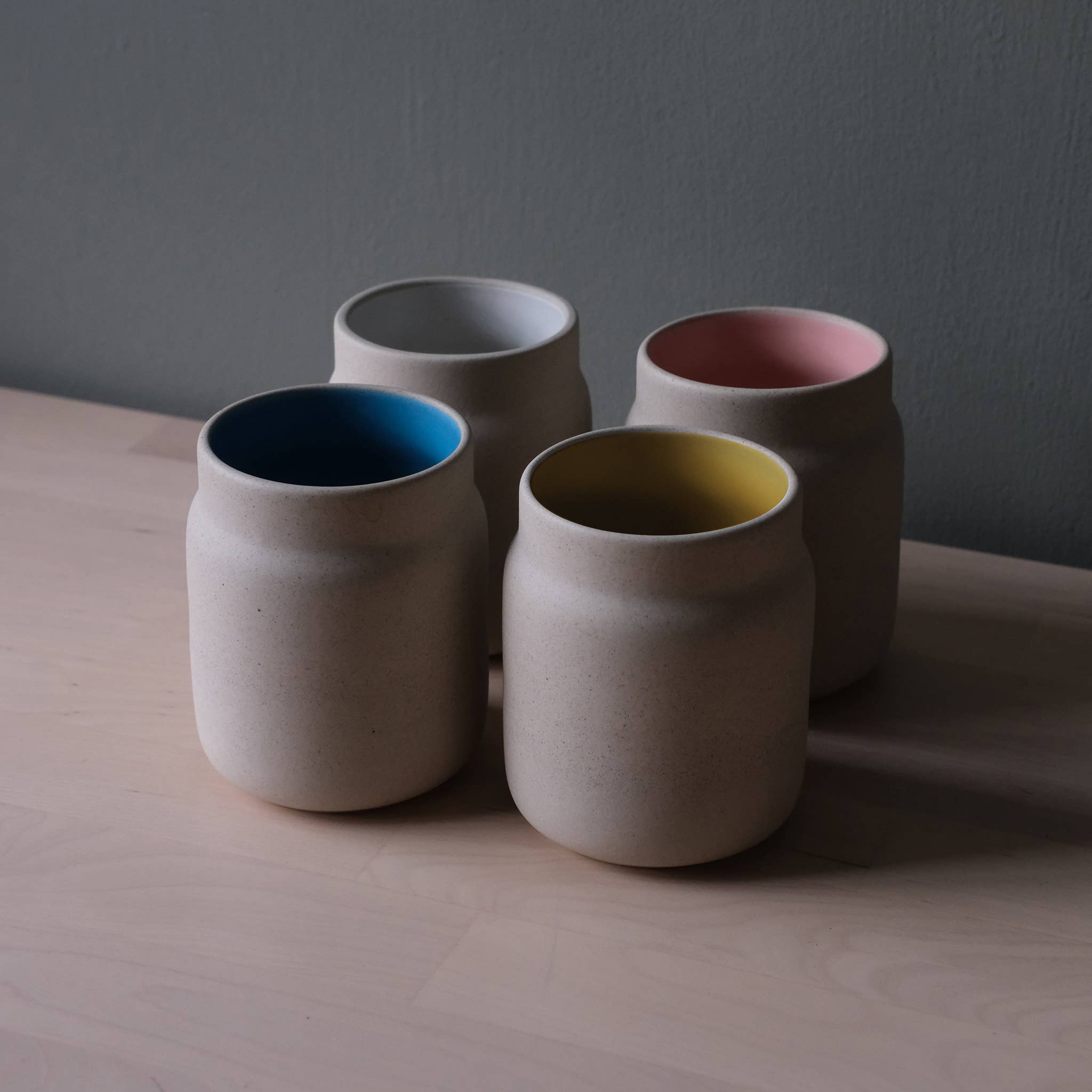Cheers! We make each stoneware mug by hand in our very own ceramic studio. The mugs are dishwasher safe and perfect for hot and cold beverages. 10oz MADE IN USA (Milwaukee)