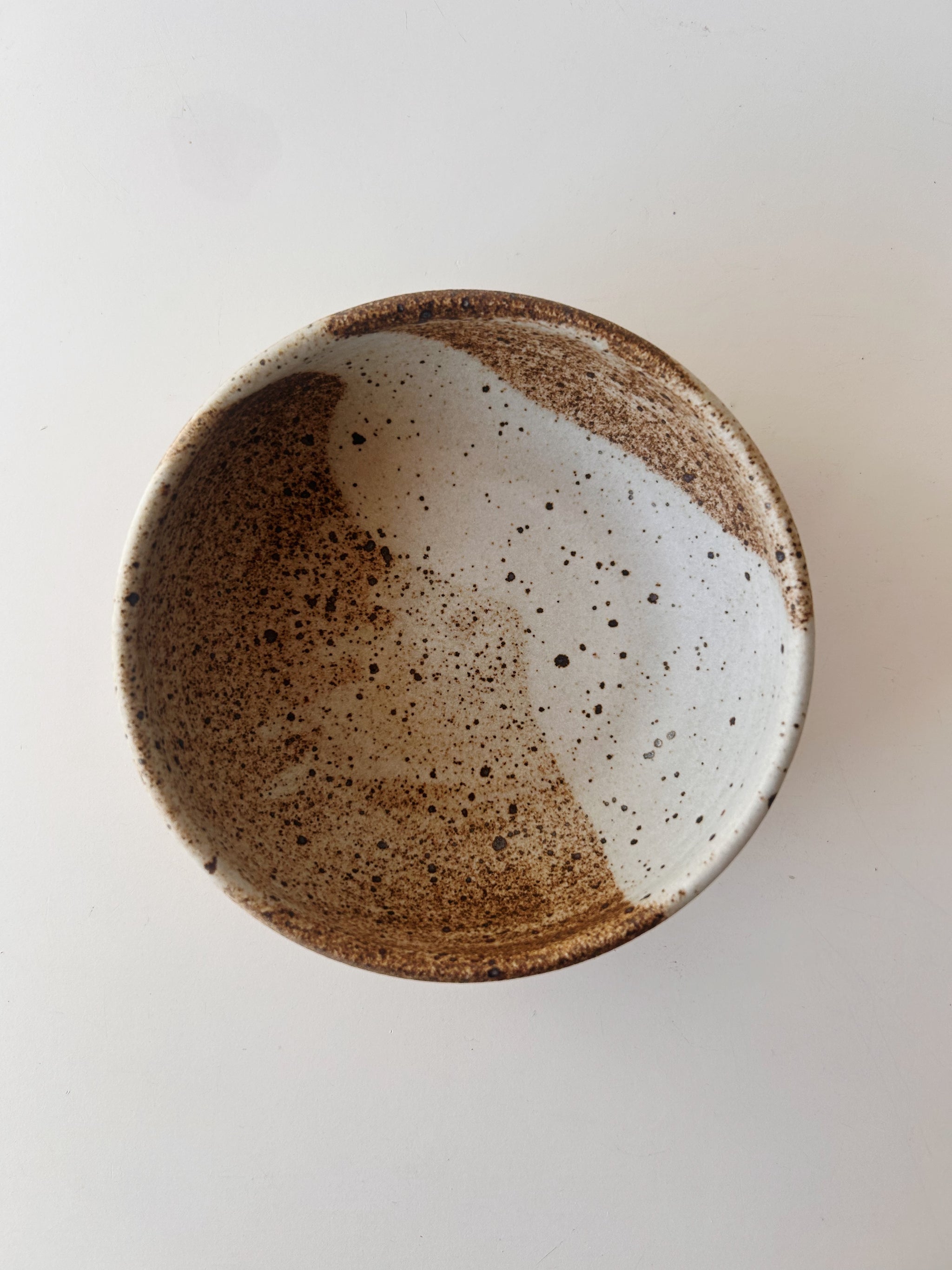 Glazed in a toasty matte glaze with a swath of foggy white.