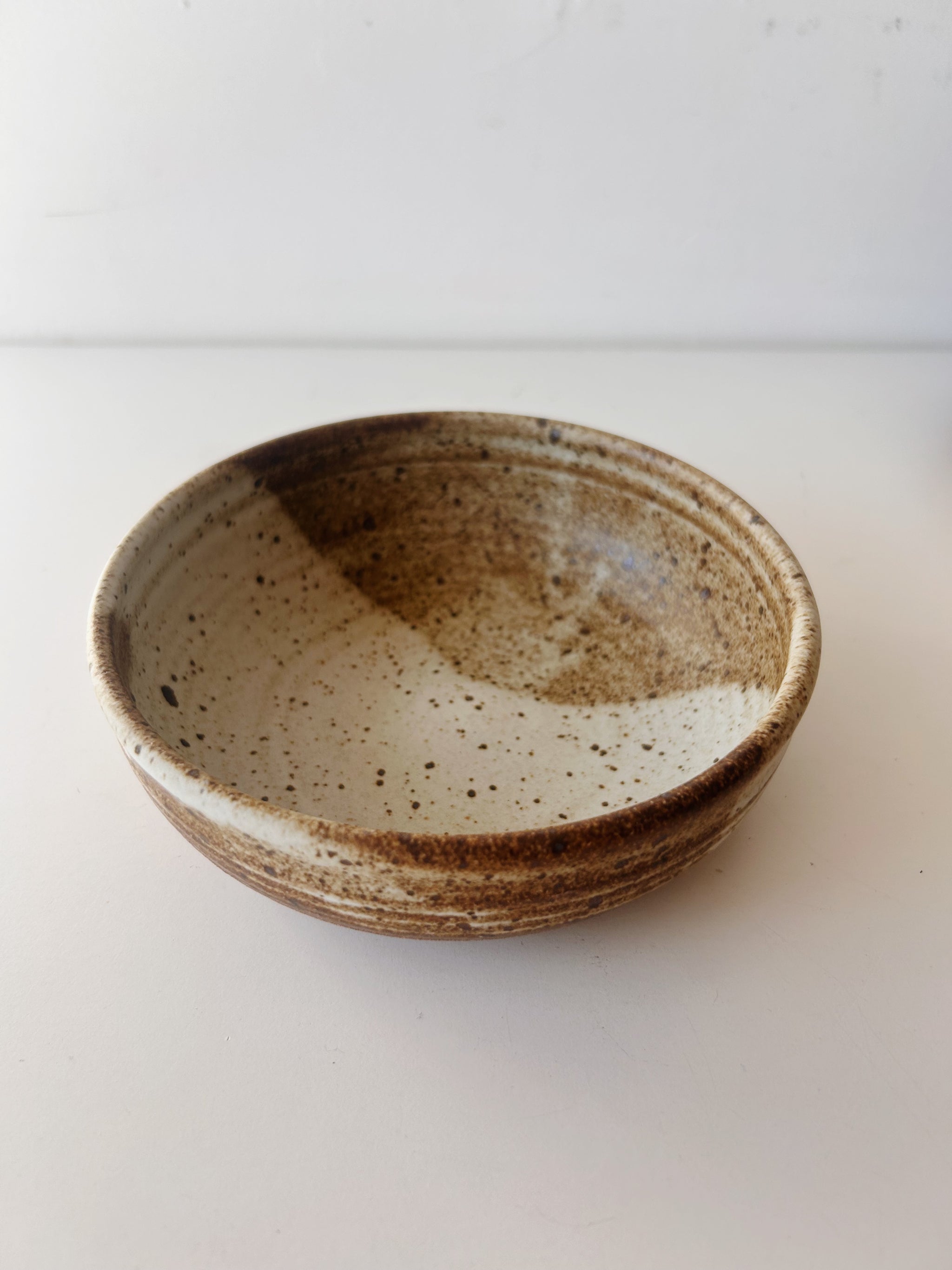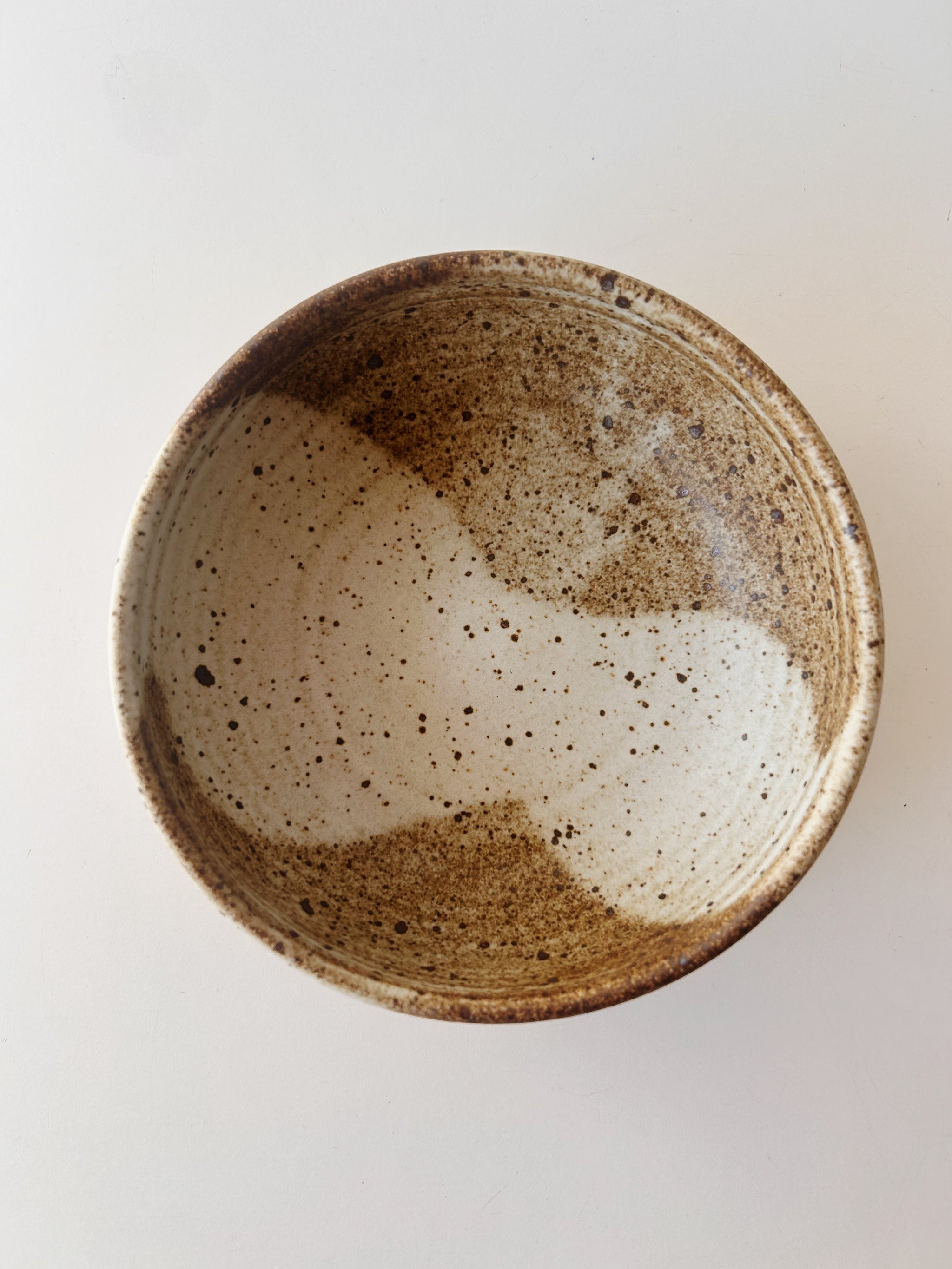 Glazed in a toasty matte glaze with a swath of foggy white.