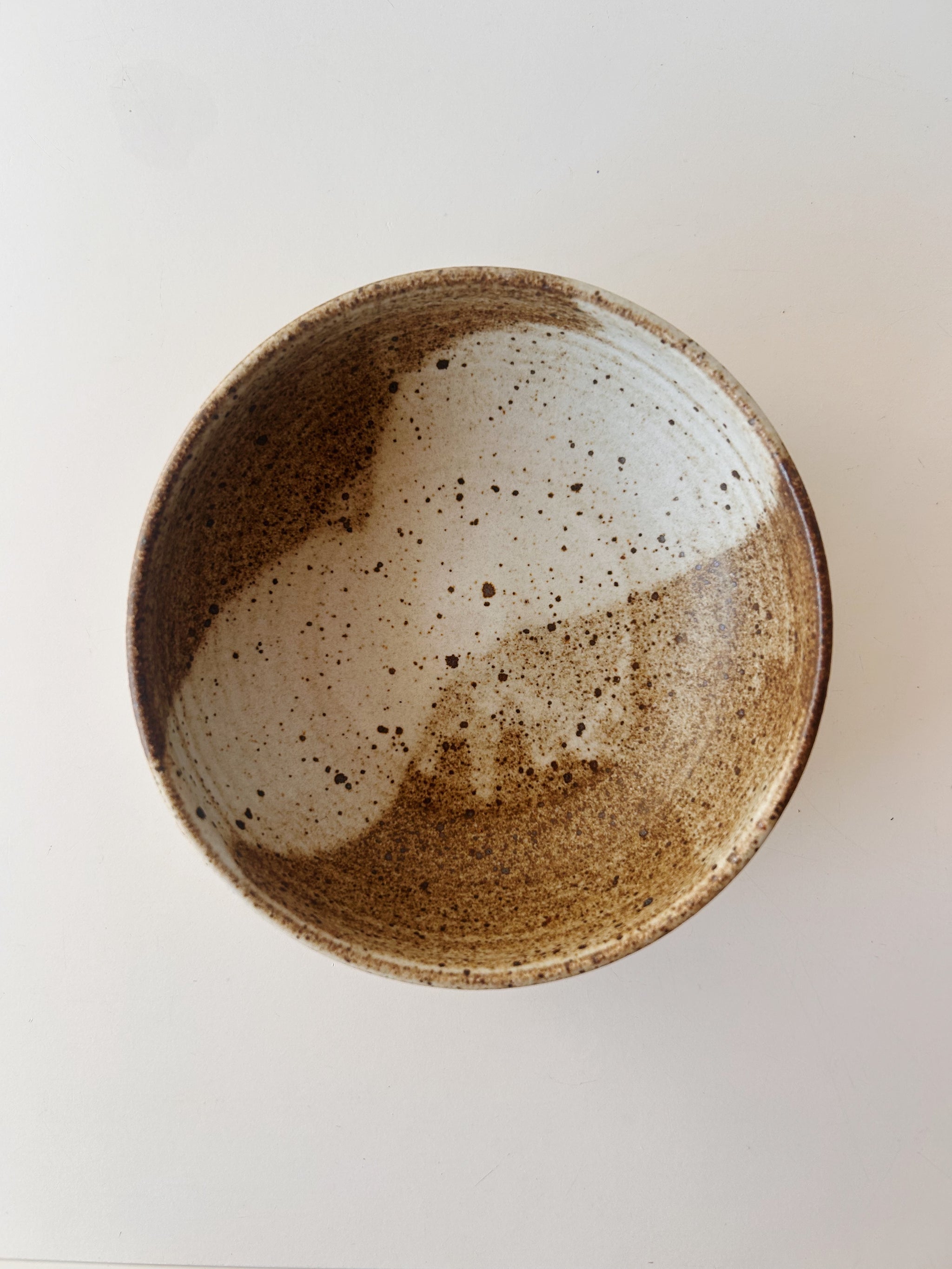 Glazed in a toasty matte glaze with a swath of foggy white.