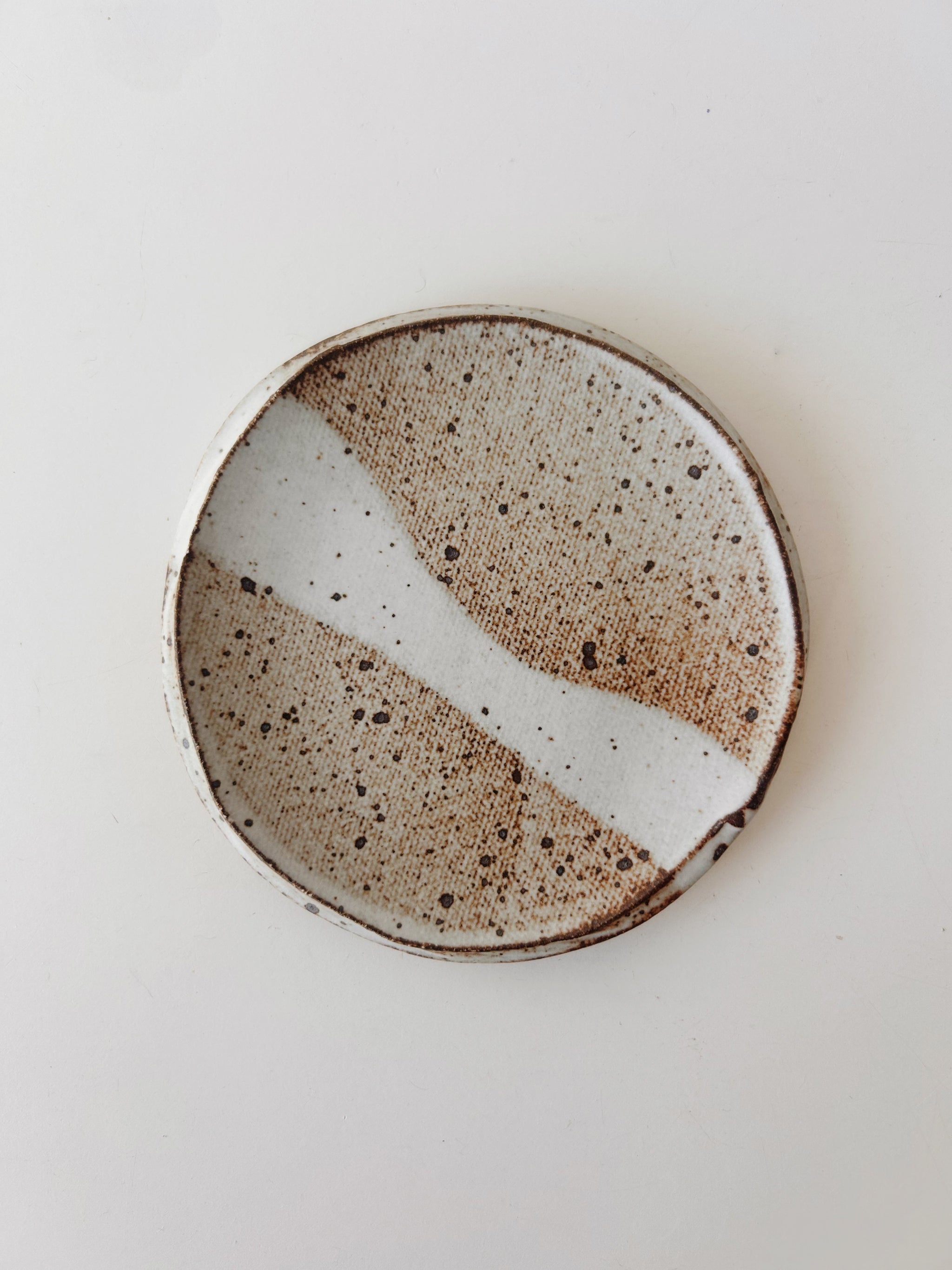 A cute little plate, just 5” in diameter, for serving small bites, appetizers, palo santo or jewelry.