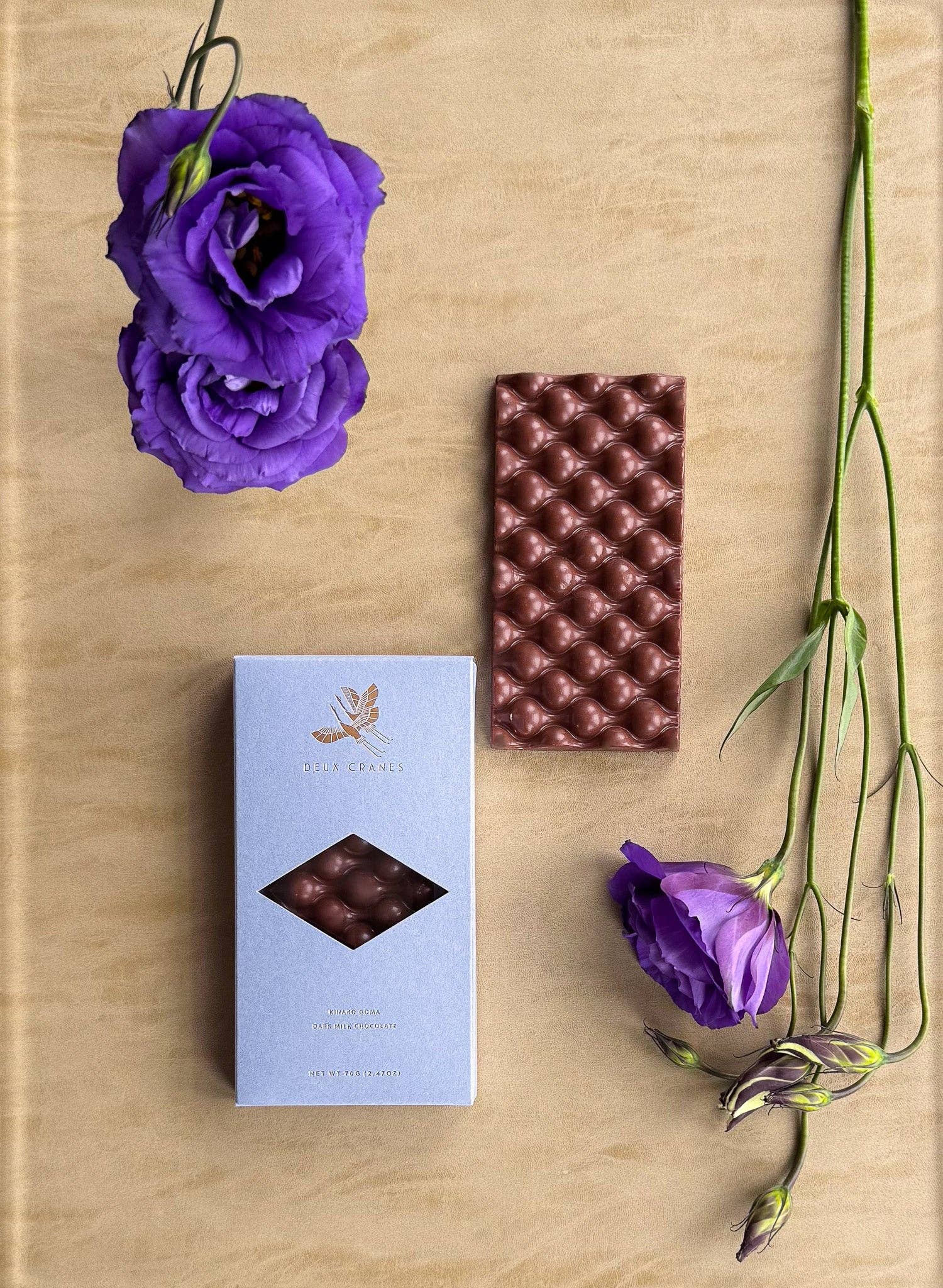 Silky milk chocolate meets the nutty warmth of kinako- a traditional Japanese roasted soybean powder beloved in confections for centuries. Combined with rich black sesame paste, this bar delivers the nostalgic comfort of chocolate and "peanut butter" without a single peanut. A sophisticated twist on a timeless favorite.