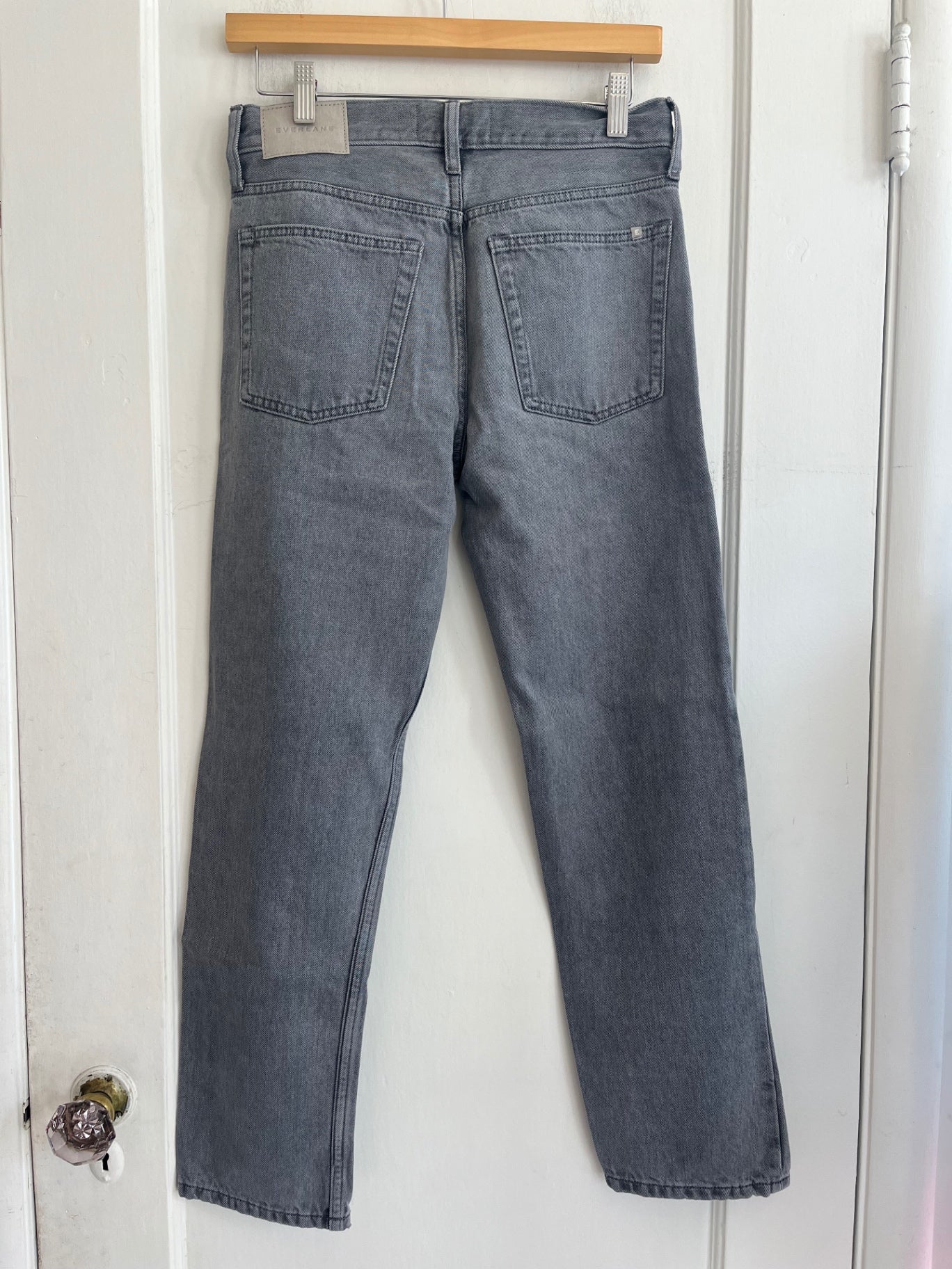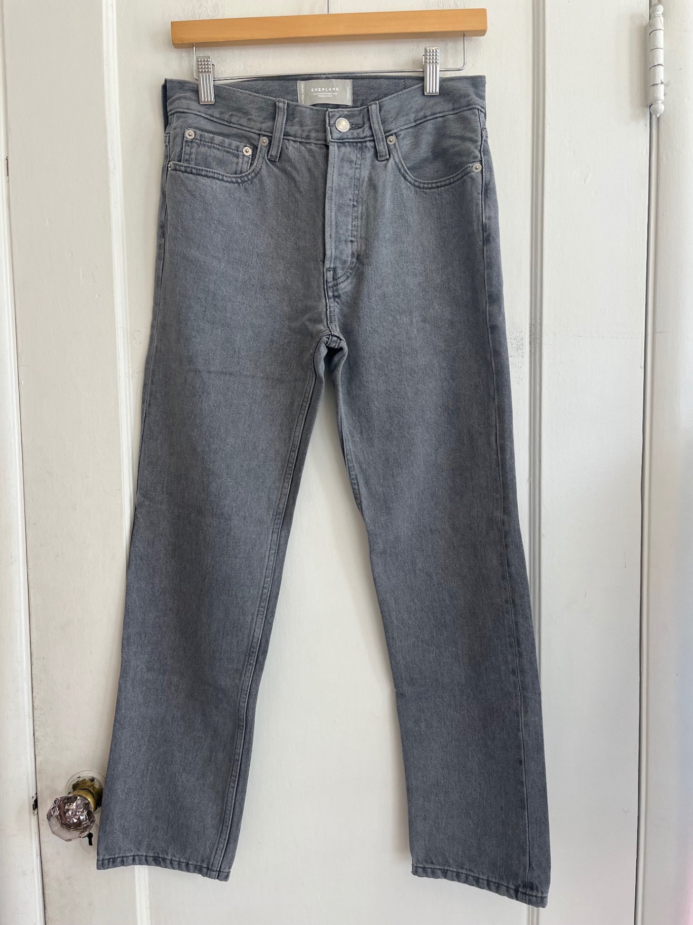 Classic Everlane relaxed straight jeans in a gray wash. Mid-rise with a straight leg and organic cotton.