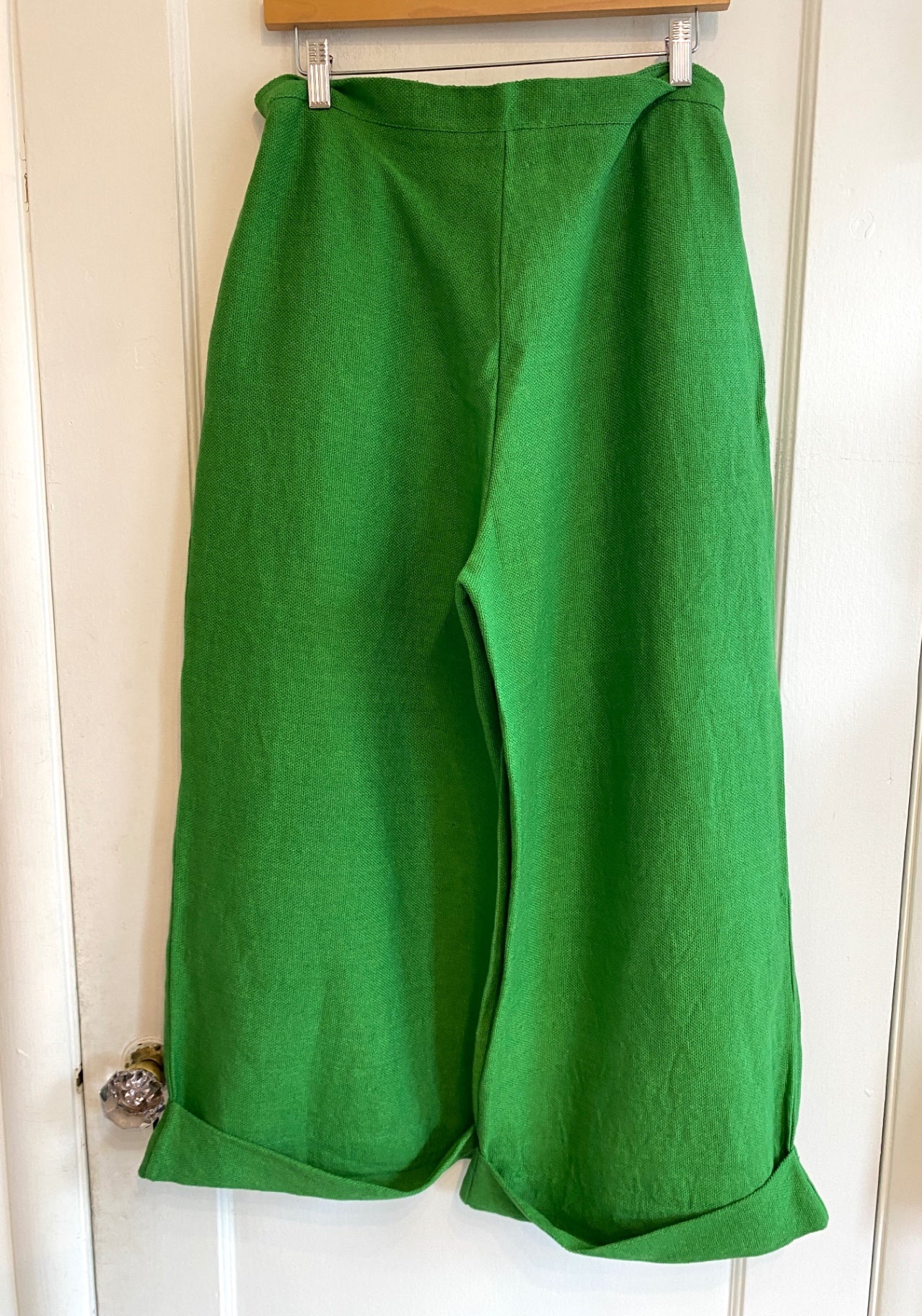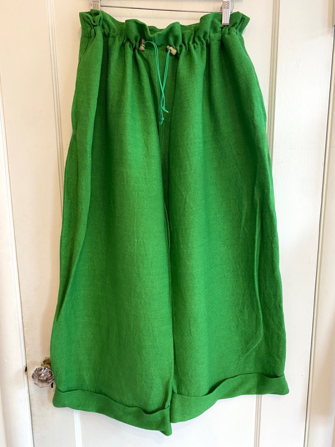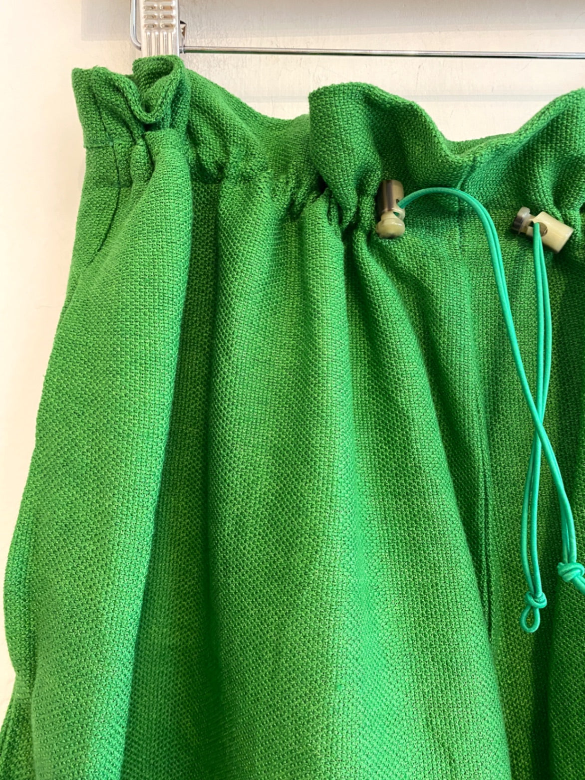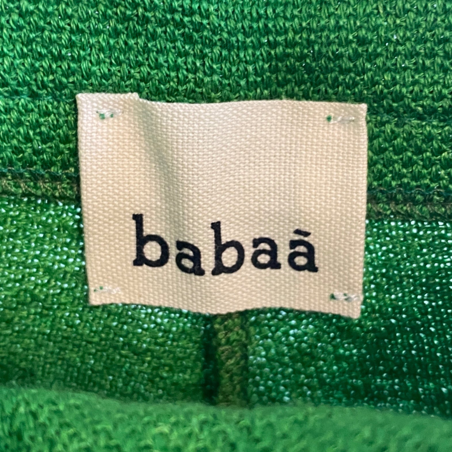 These vibrant green pants from babaã feature a relaxed, wide-leg silhouette with a comfortable elastic waistband. Made from a textured textile, they offer a breezy and stylish option for casual wear. The loose fit and breathable fabric make them perfect for warm weather.
