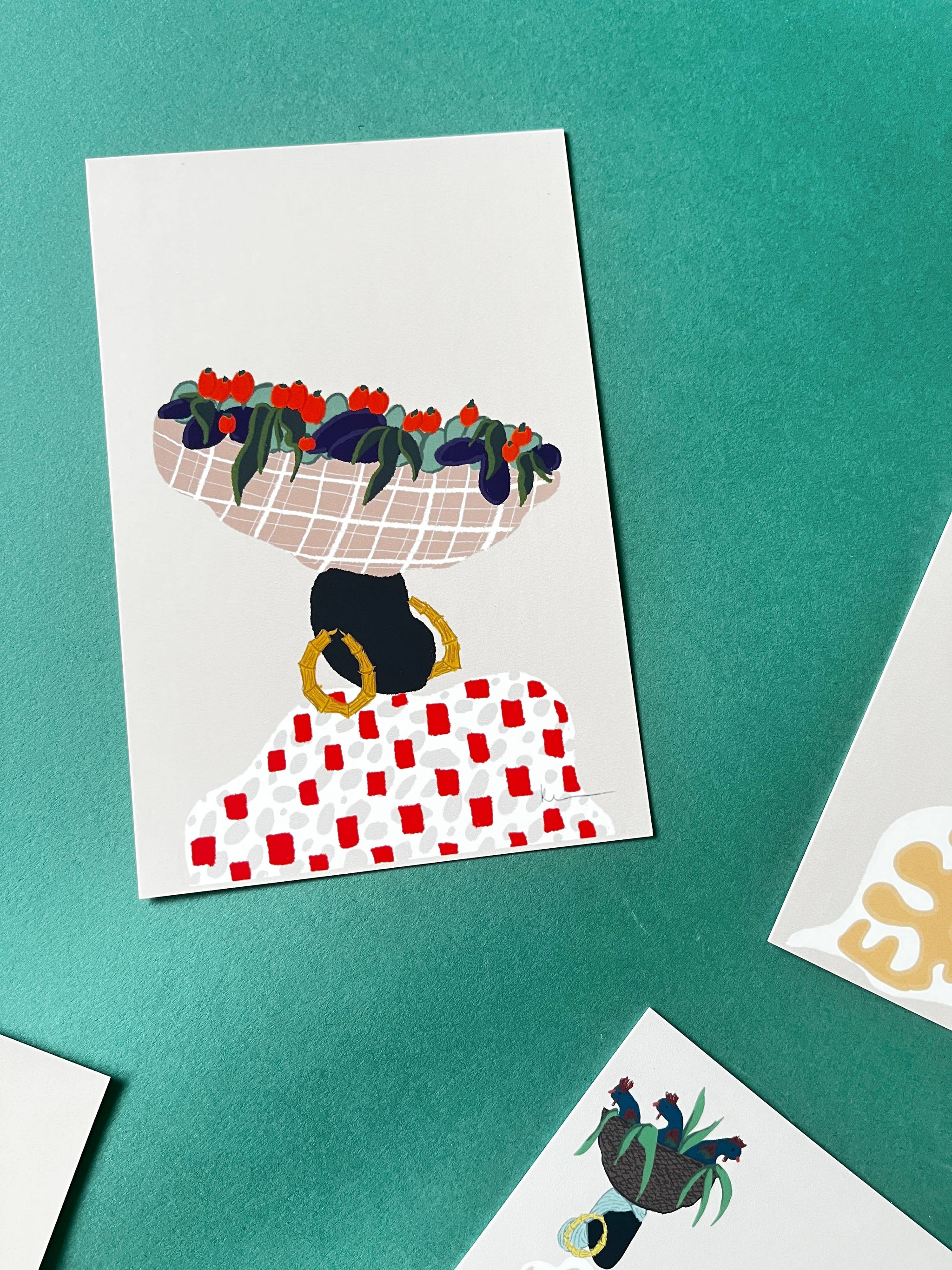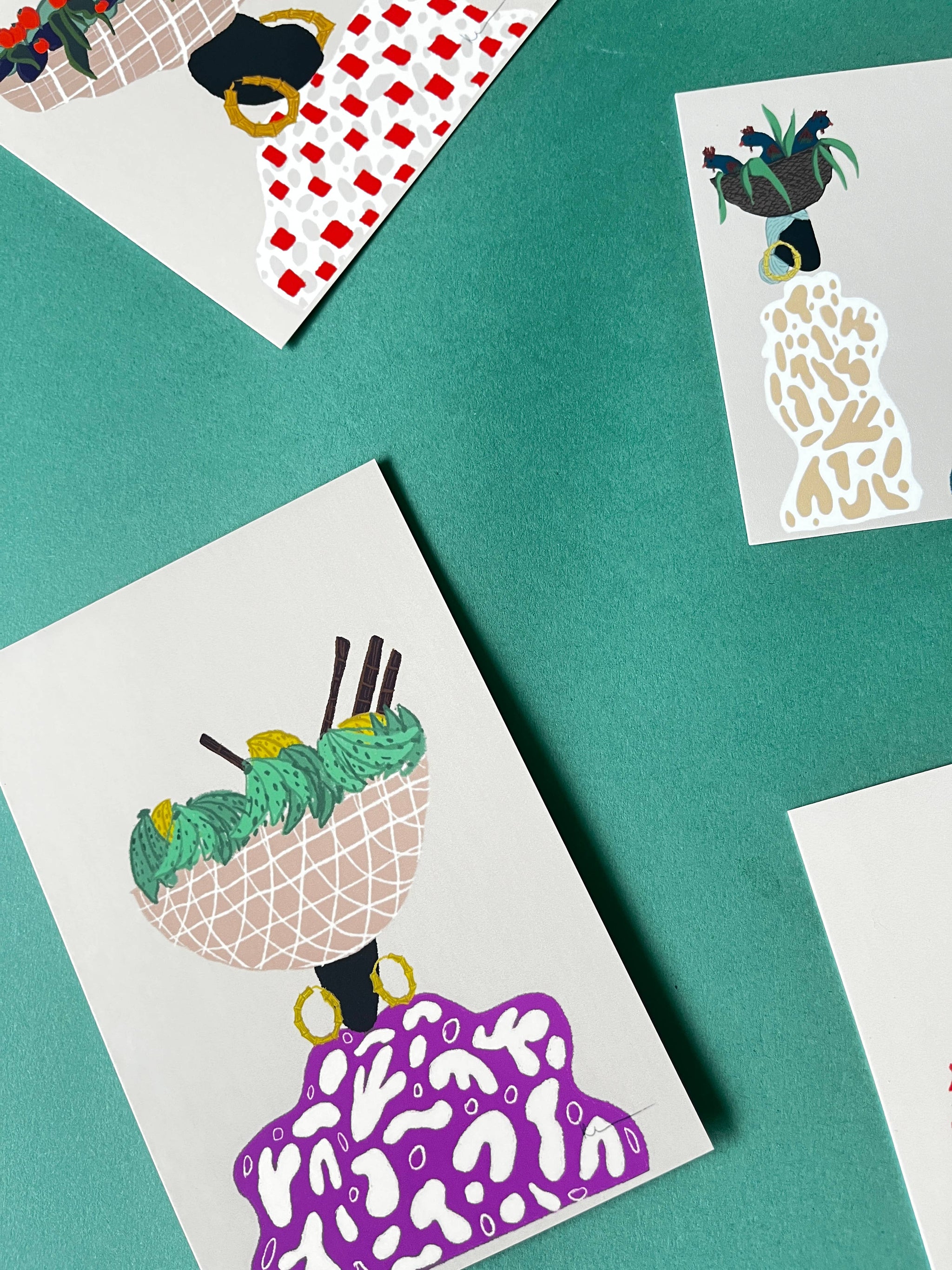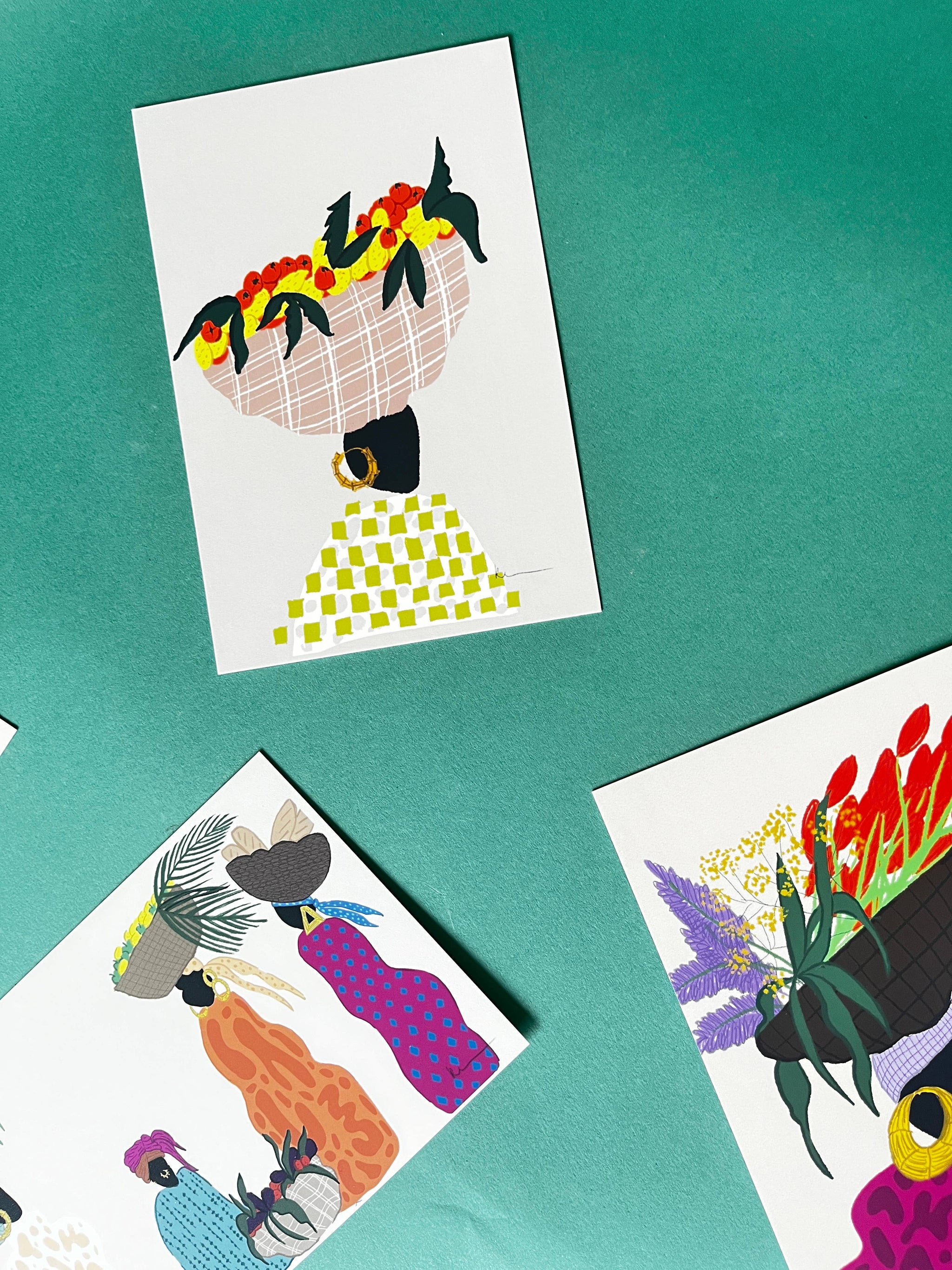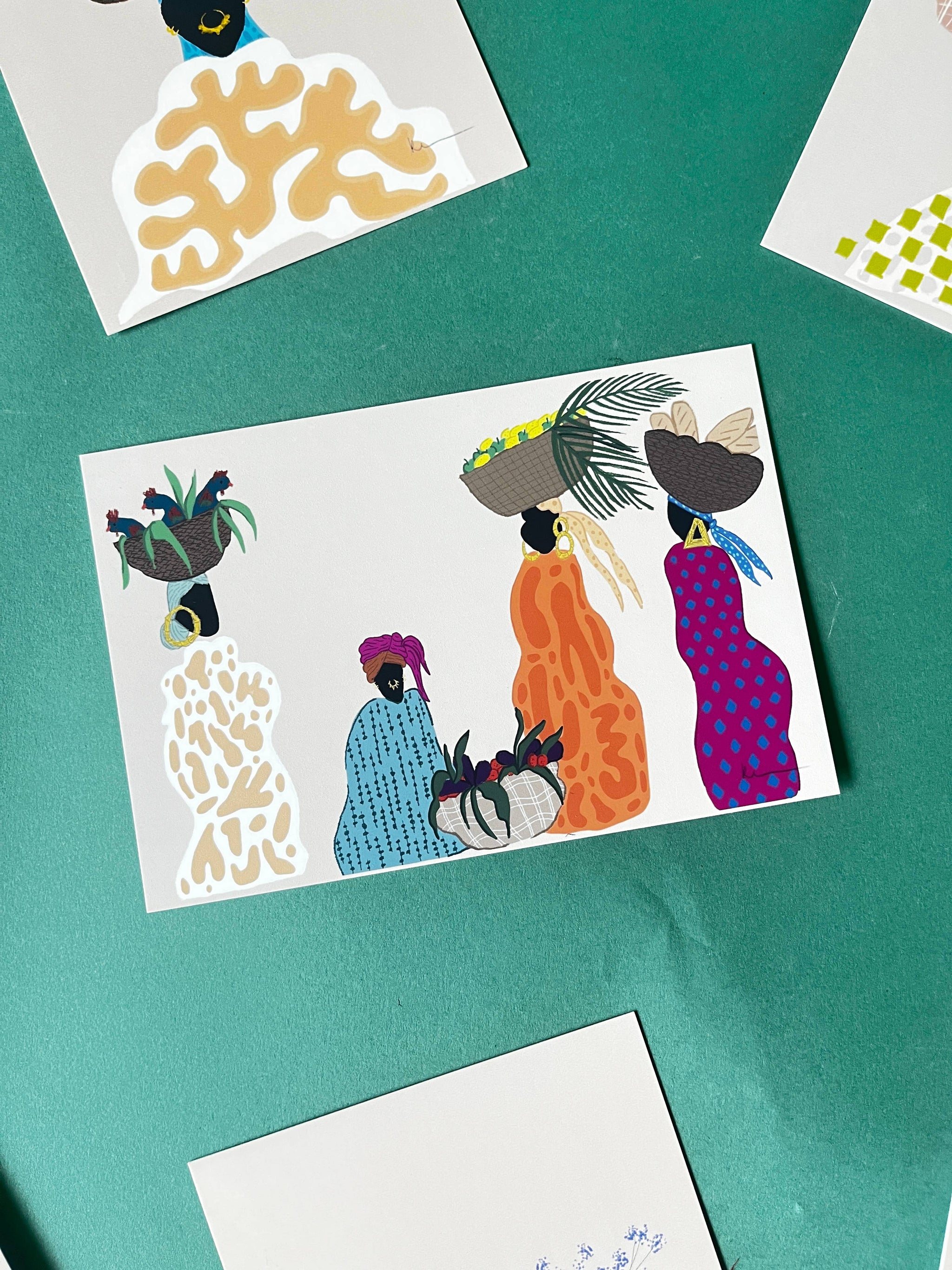 A set of 7 postcards (4x6) featuring original artwork by Kel Cadet-Lyons.