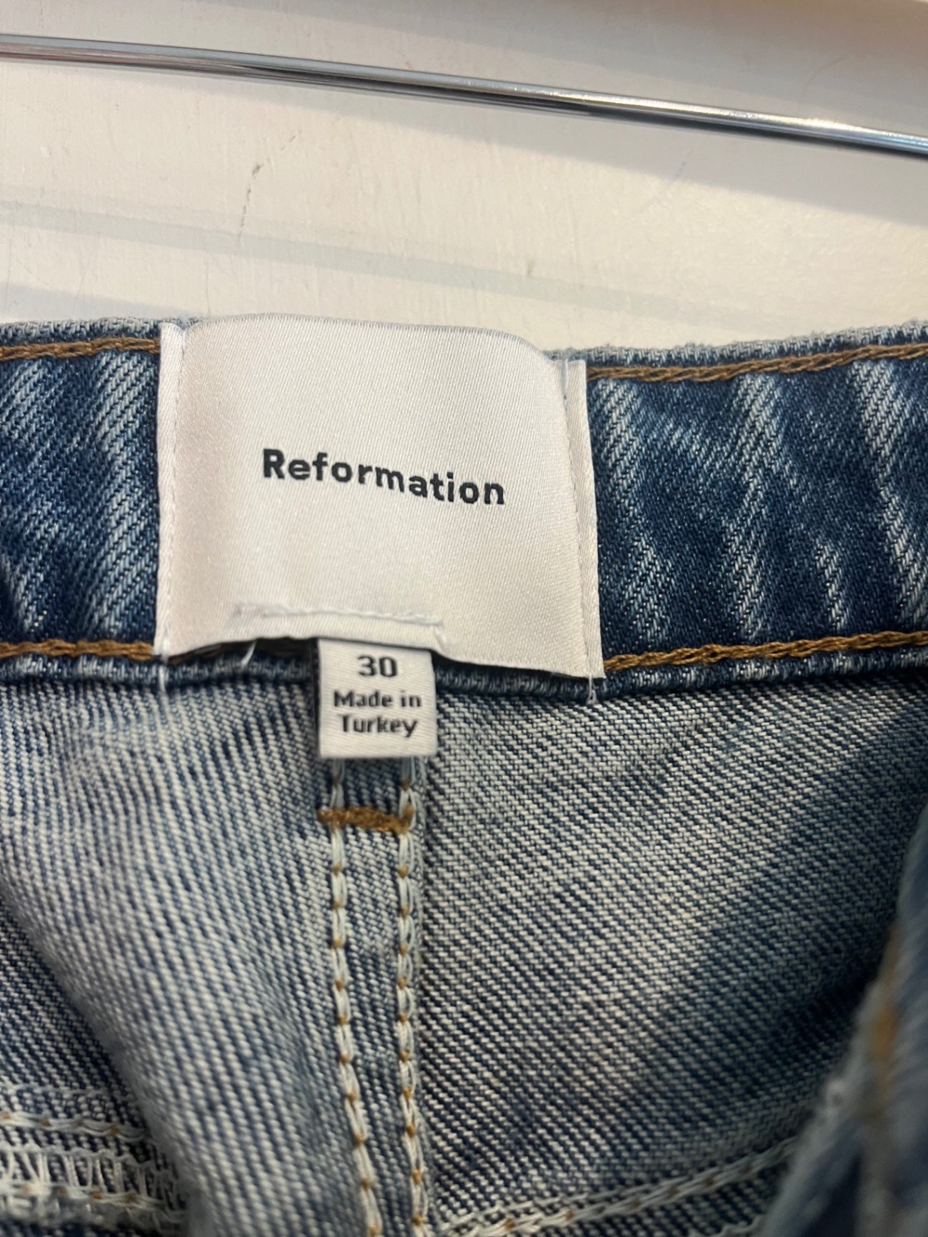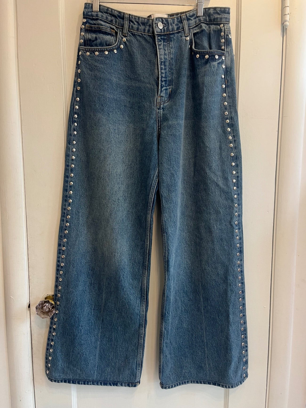 These Reformation jeans feature silver stud detailing along the pockets and outer seams.