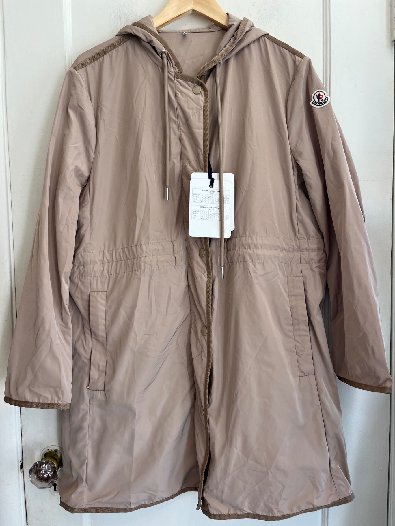 Moncler hooded coat, snap + zip clousure