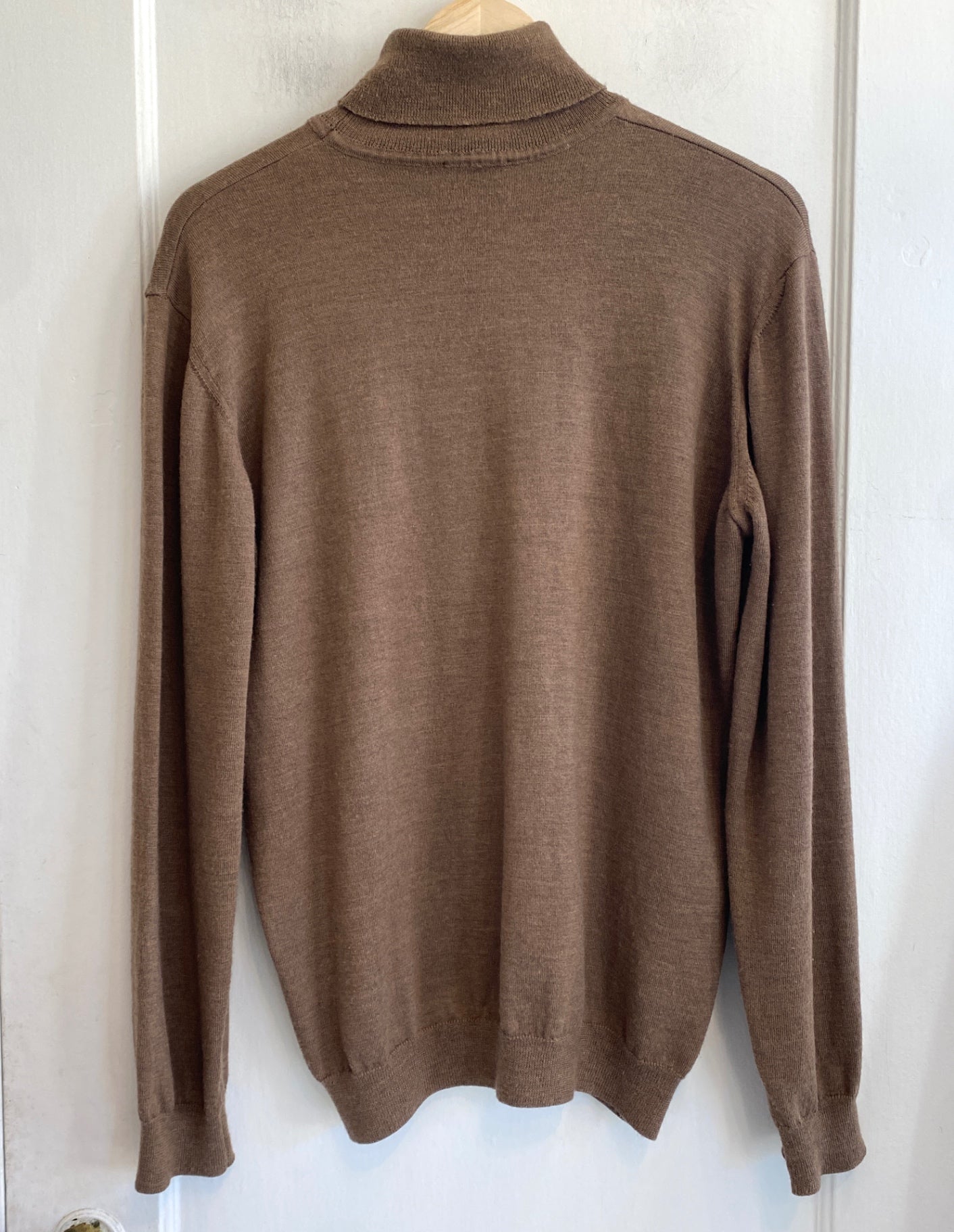 This cozy brown sweater offers a timeless look with its soft knitted fabric. Designed with a classic collar and relaxed fit, it's perfect for layering in cooler weather. The subtle texture and warm tone make it a versatile addition to any wardrobe, easily paired with jeans or tailored trousers for a chic casual vibe.
